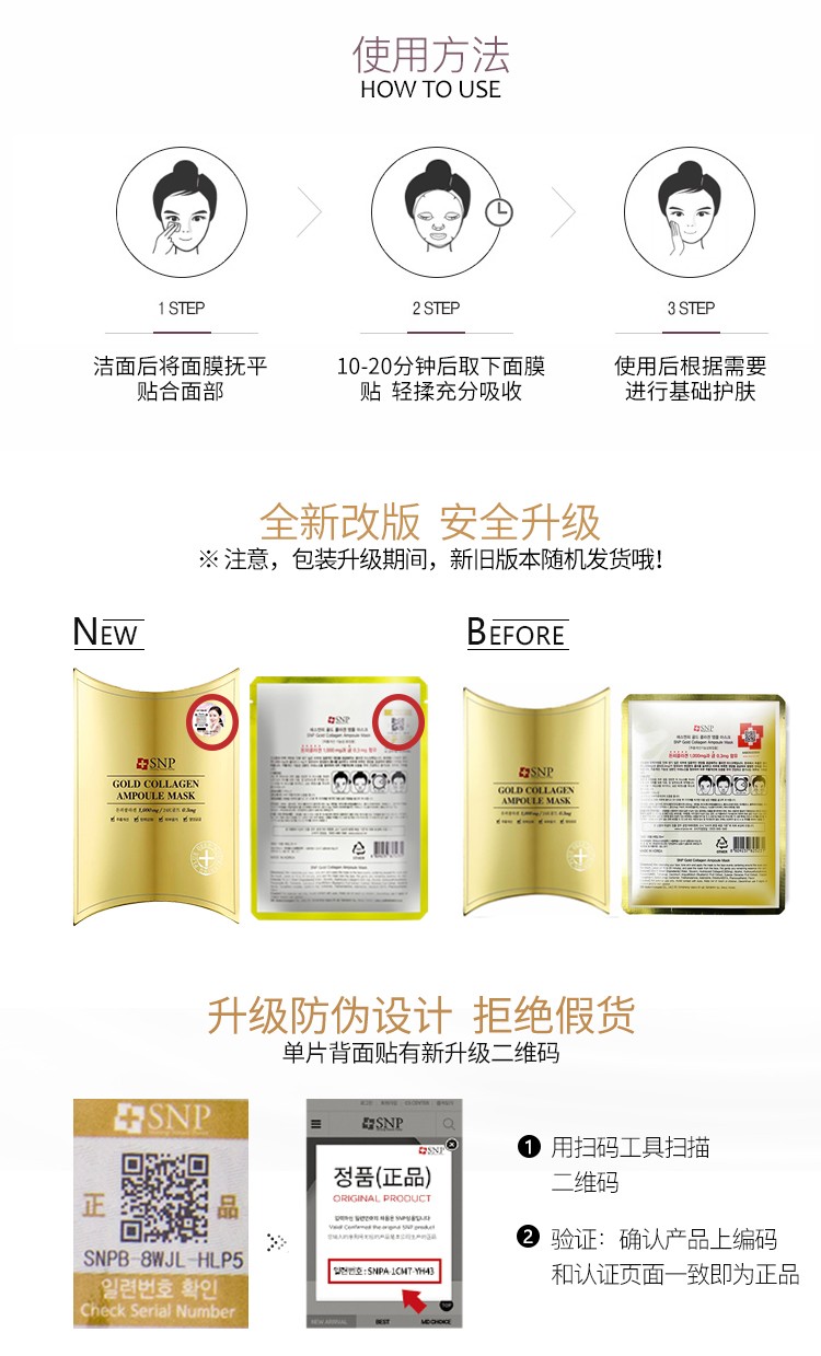 SNP爱神菲 黄金胶原蛋白精华面膜 10片/盒