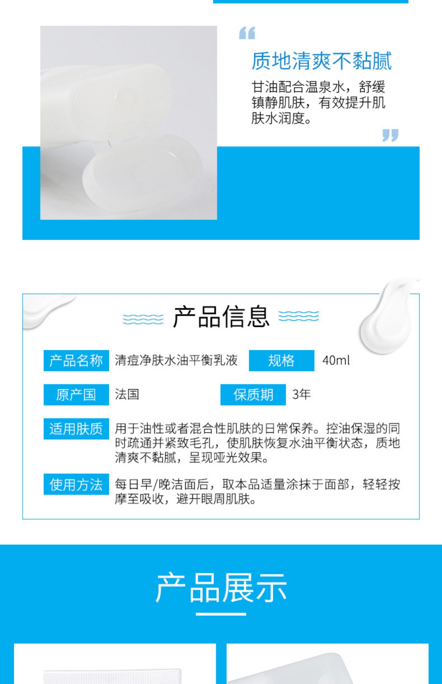 【保税仓】理肤泉清痘净肤水油平衡保湿乳40ml