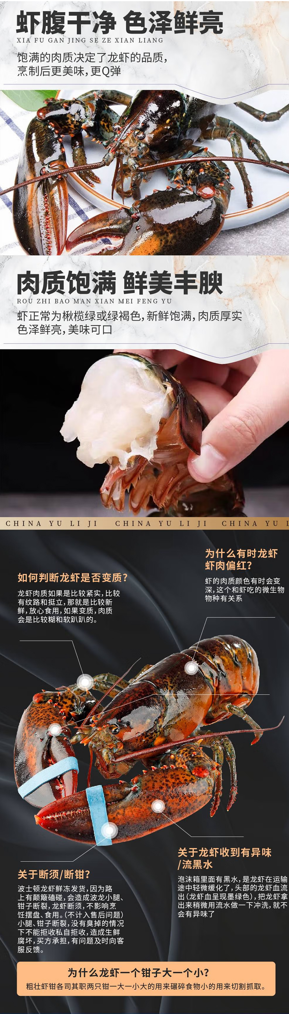 【渔礼记波士顿龙虾】深海洁净船捕速冻 锁住鲜美 餐桌畅享龙虾大餐