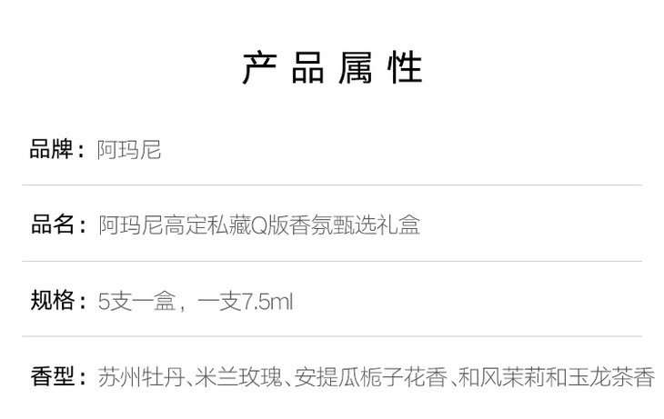 礼盒内含5支热门香,分别是苏州牡丹、米兰玫瑰、安提瓜栀子花香、和风茉莉和玉龙茶香。