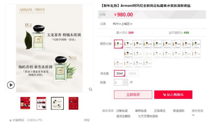 但大家都知道,阿玛尼家的产品一向都不便宜,一瓶50ml的香水就要980元。