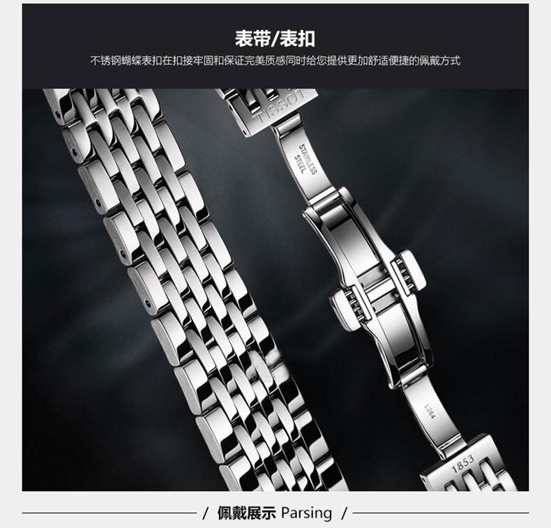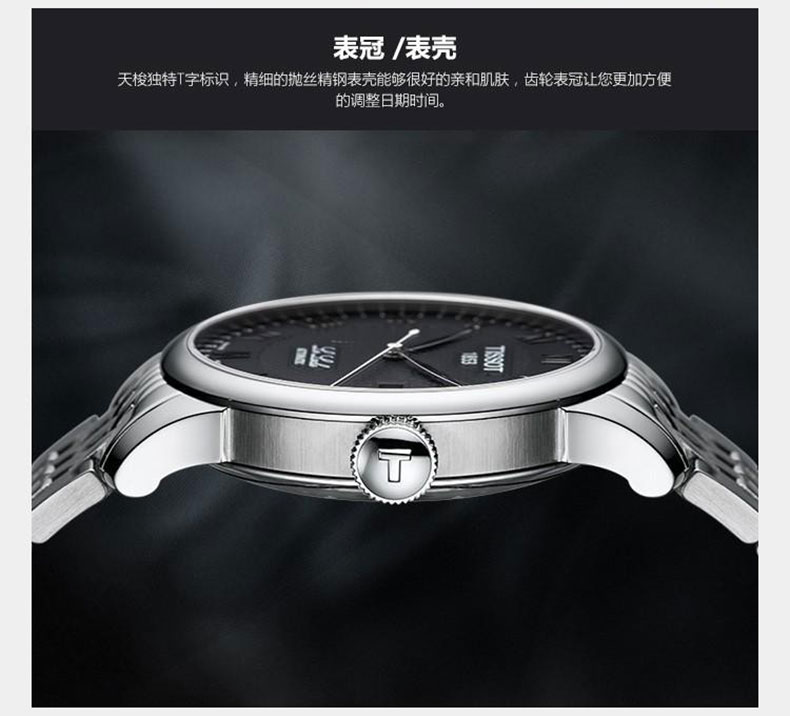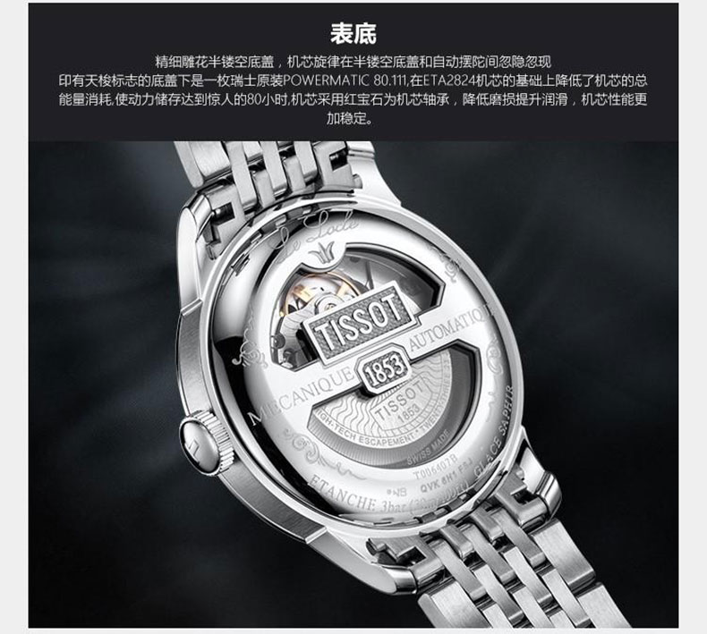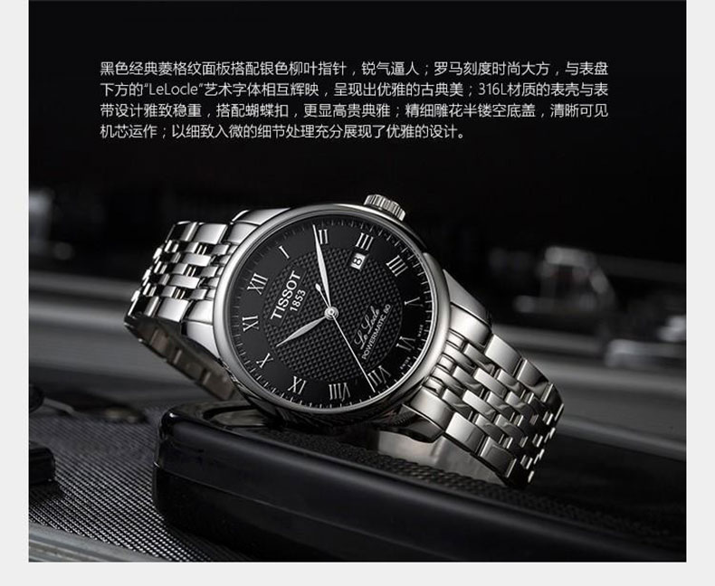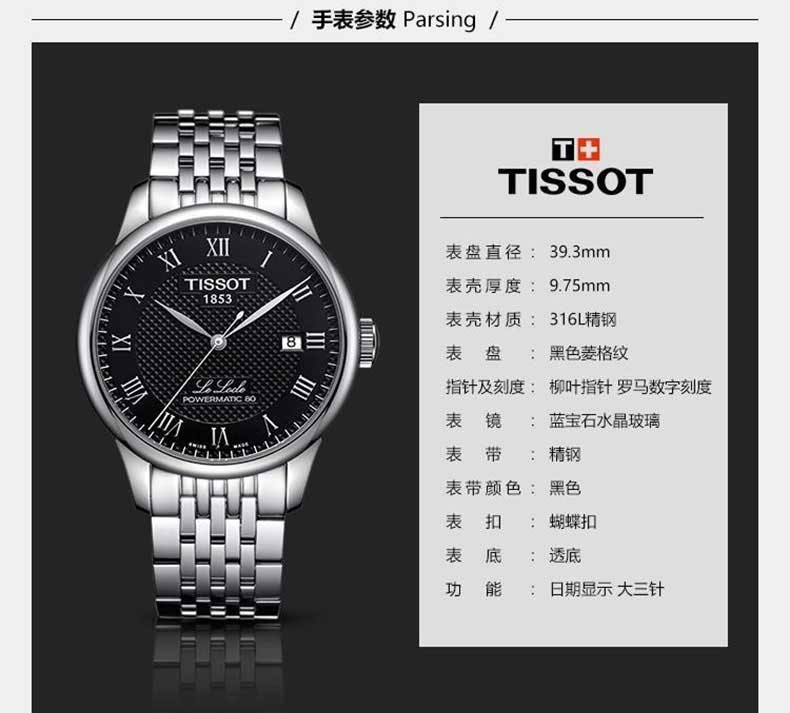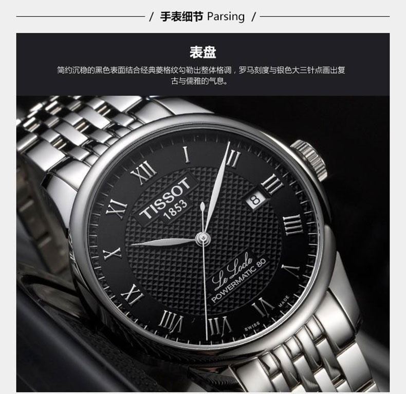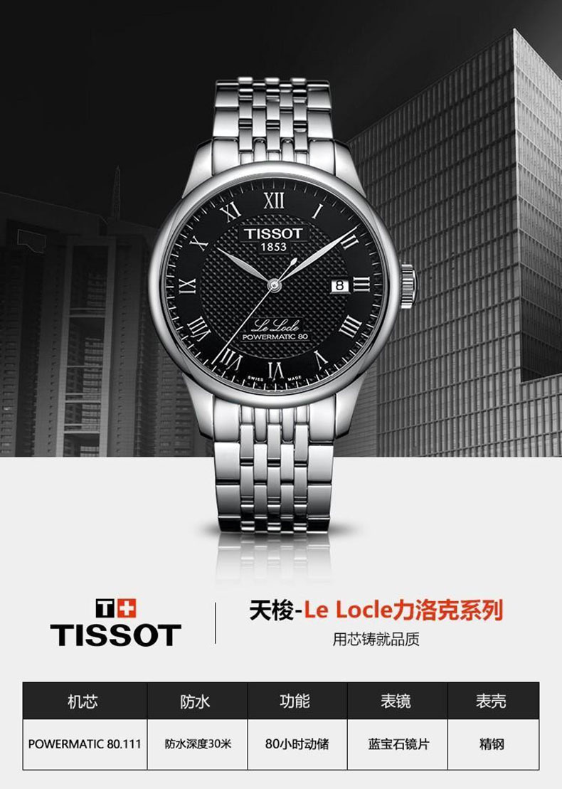 天梭Tissot力洛克系列80机芯机械男表黑盘钢带T006.407.11.053.00