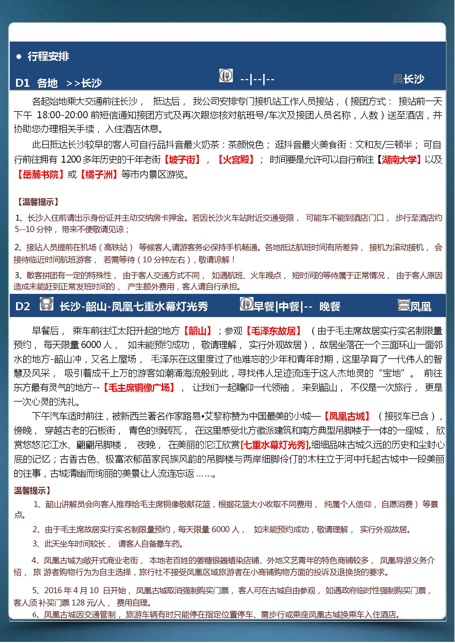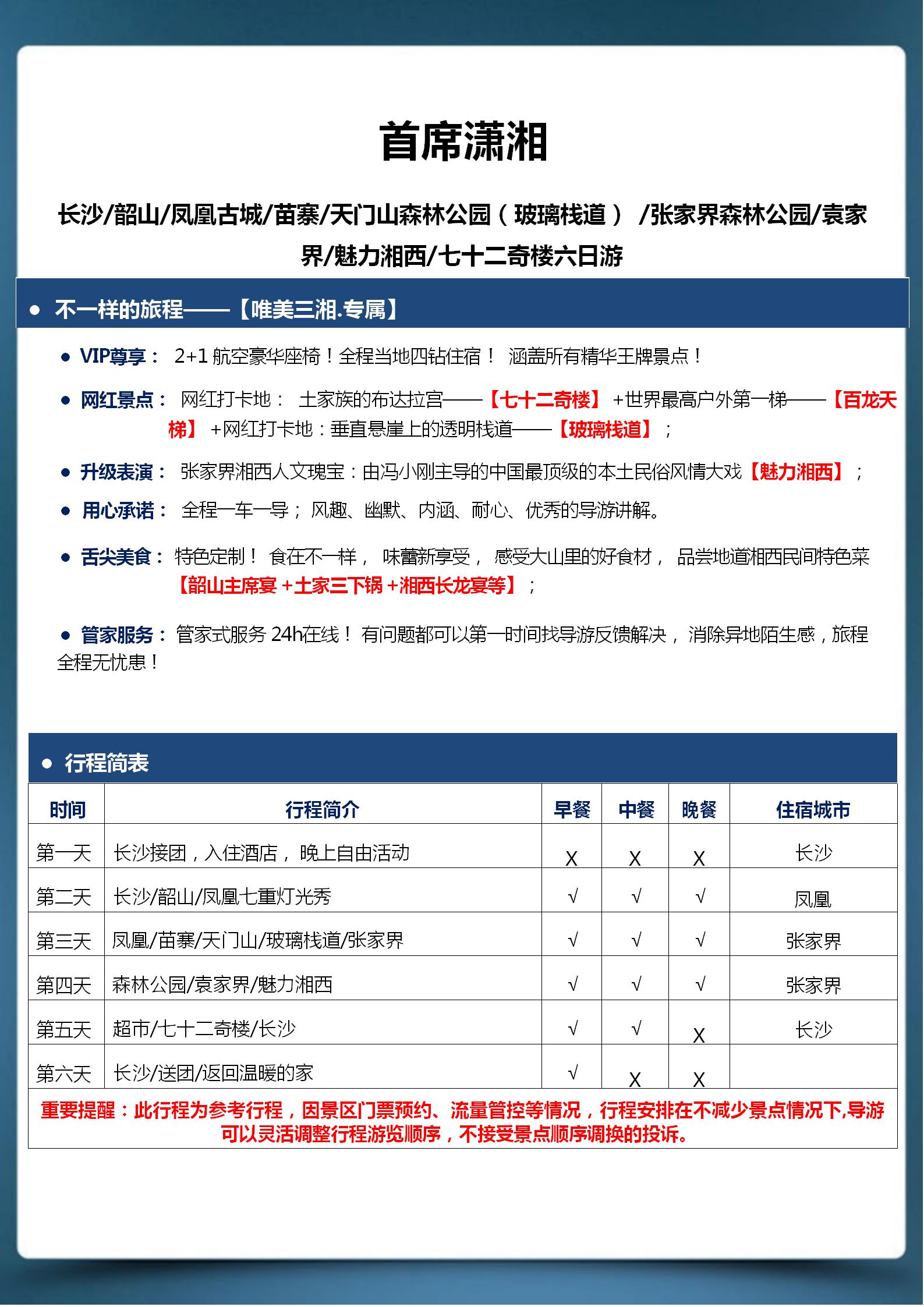 首席潇湘四钻--携程评级标准(长沙-韶山-凤凰-天门山-张家界往返6日游含餐)(25人成团)