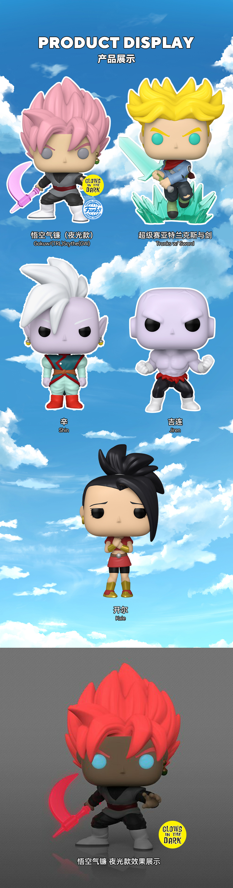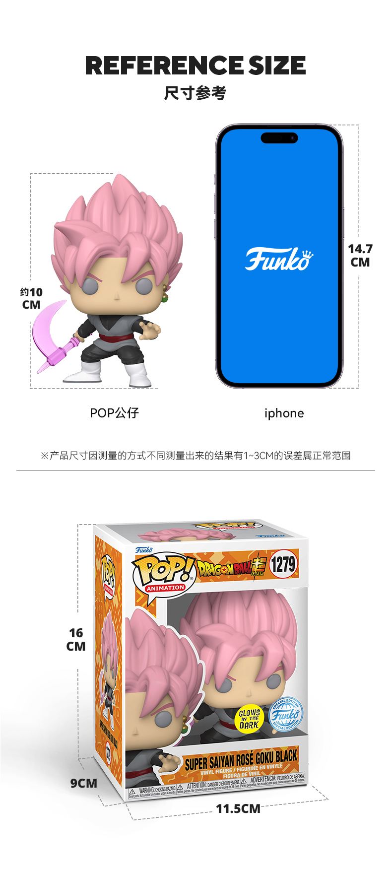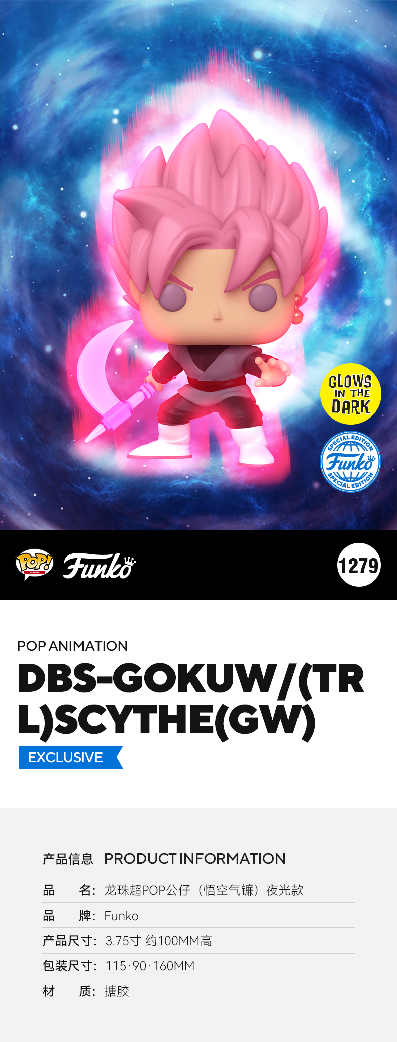 Funko POP! Super Saiyan Rose Goku Black 日漫 龙珠超 悟空气镰限定夜光款手办公仔摆件 60285