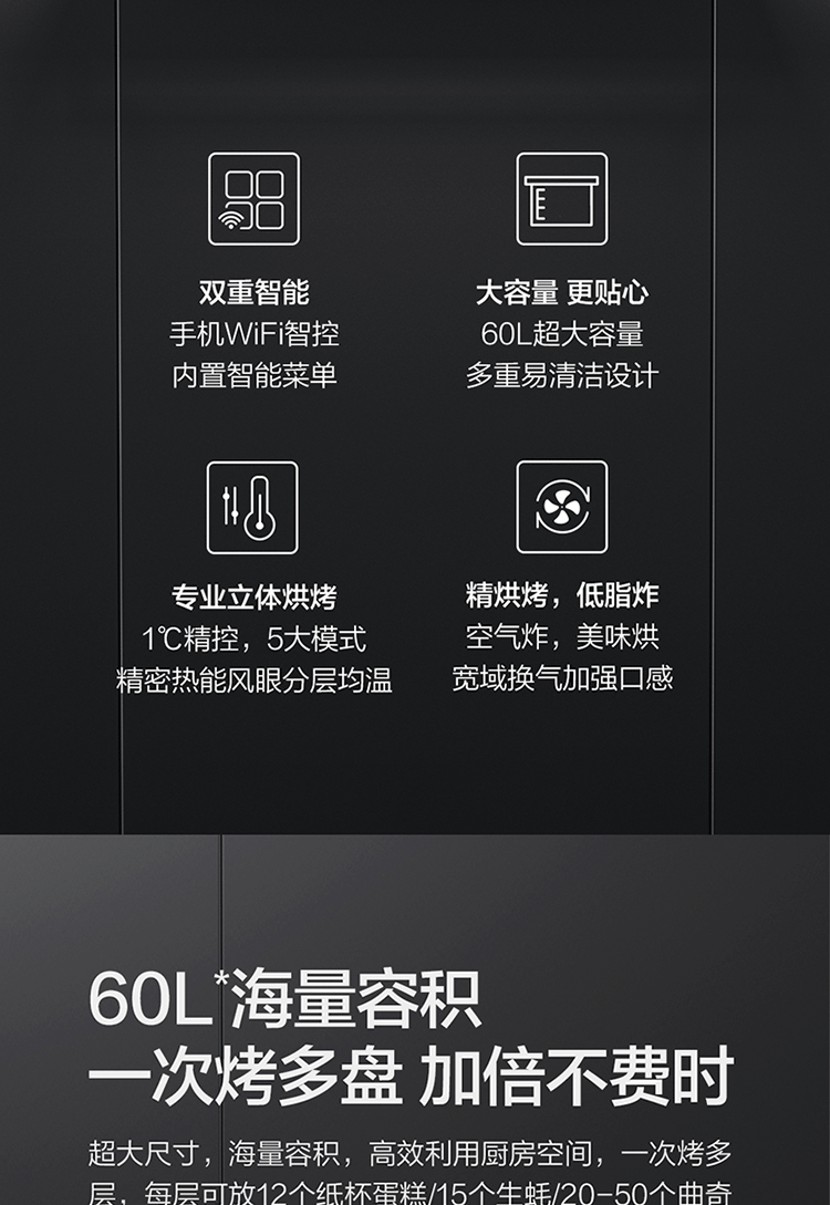 方太(FOTILE)嵌入式烤箱电烤箱家用智能1℃精准控温空气炸锅电烤箱 60L大容量 KQD60F-EX1.i