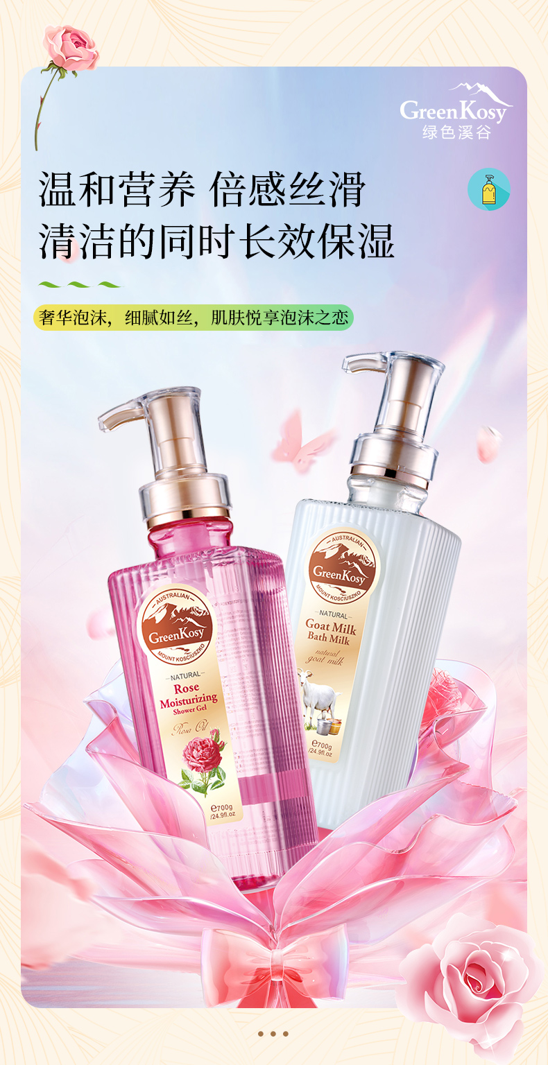 绿色溪谷玫瑰保湿沐浴露700g+绿色溪谷山羊奶丝滑沐浴乳700g