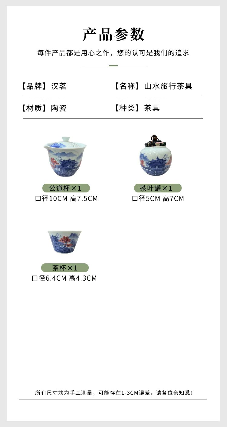 汉茗 山水旅行茶具 1套( 公道杯*1茶杯*3茶叶罐*1)