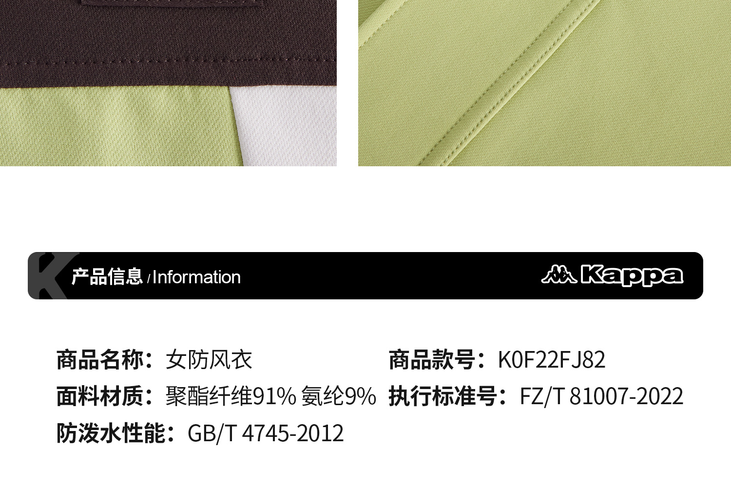 Kappa卡帕背靠背新款运动防风衣女款户外夹克防泼水连帽外套上衣K0F22FJ82