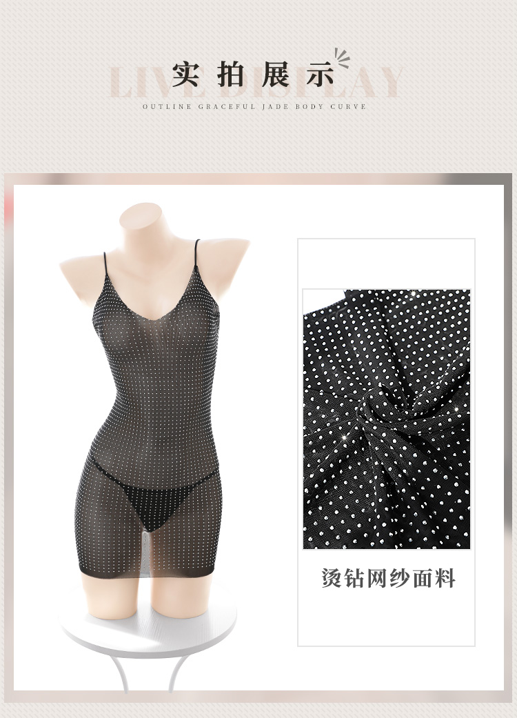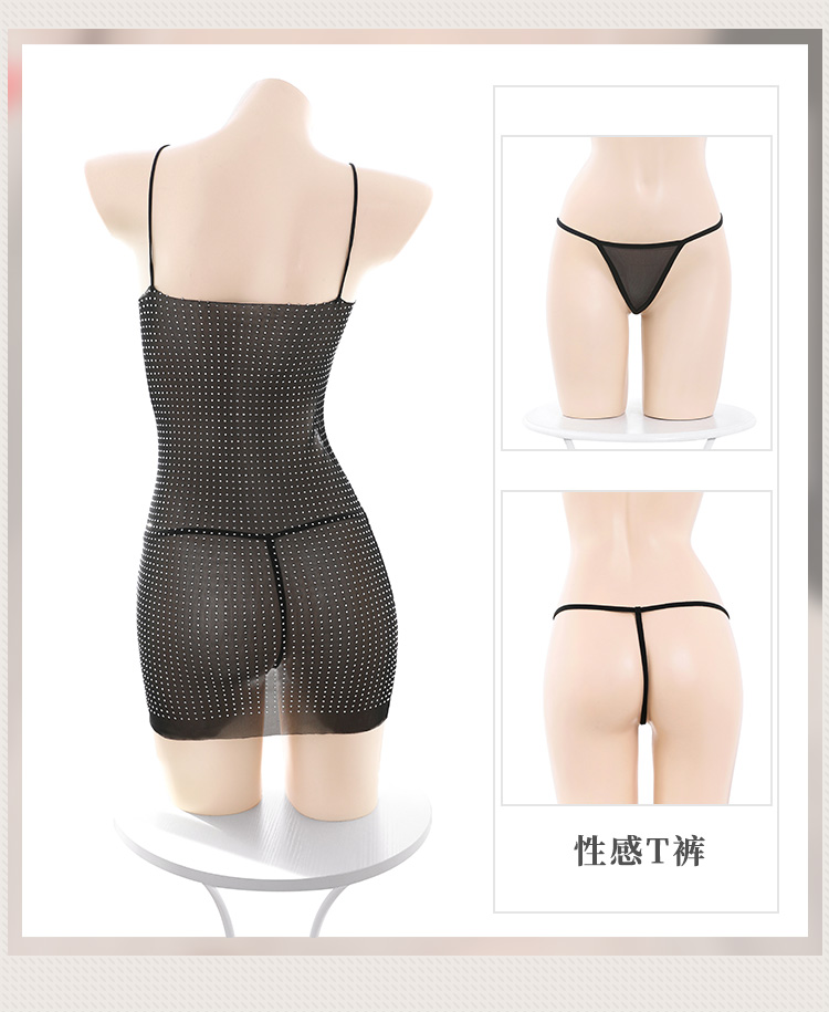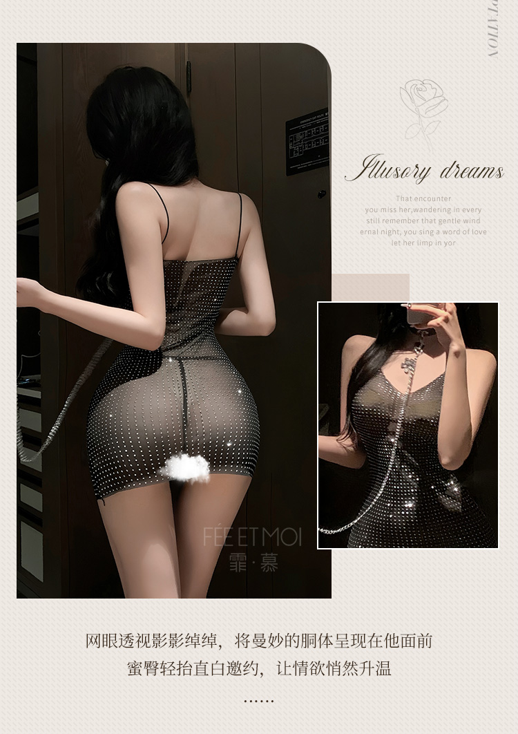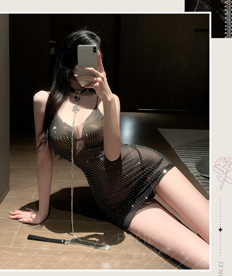 【霏慕】深V露沟透视烫钻包臀连衣裙6103情趣内衣性感纯欲套装