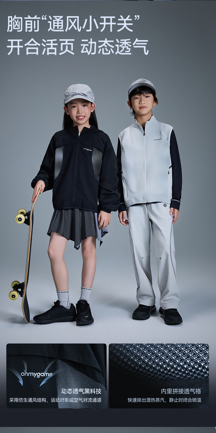 onmygame 儿童运动外套秋装男女童可穿连帽休闲夹克短款保暖上衣