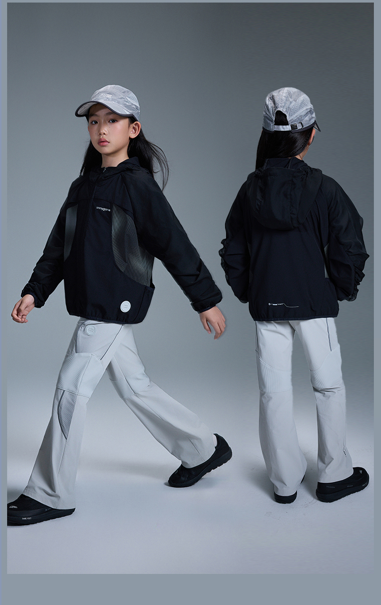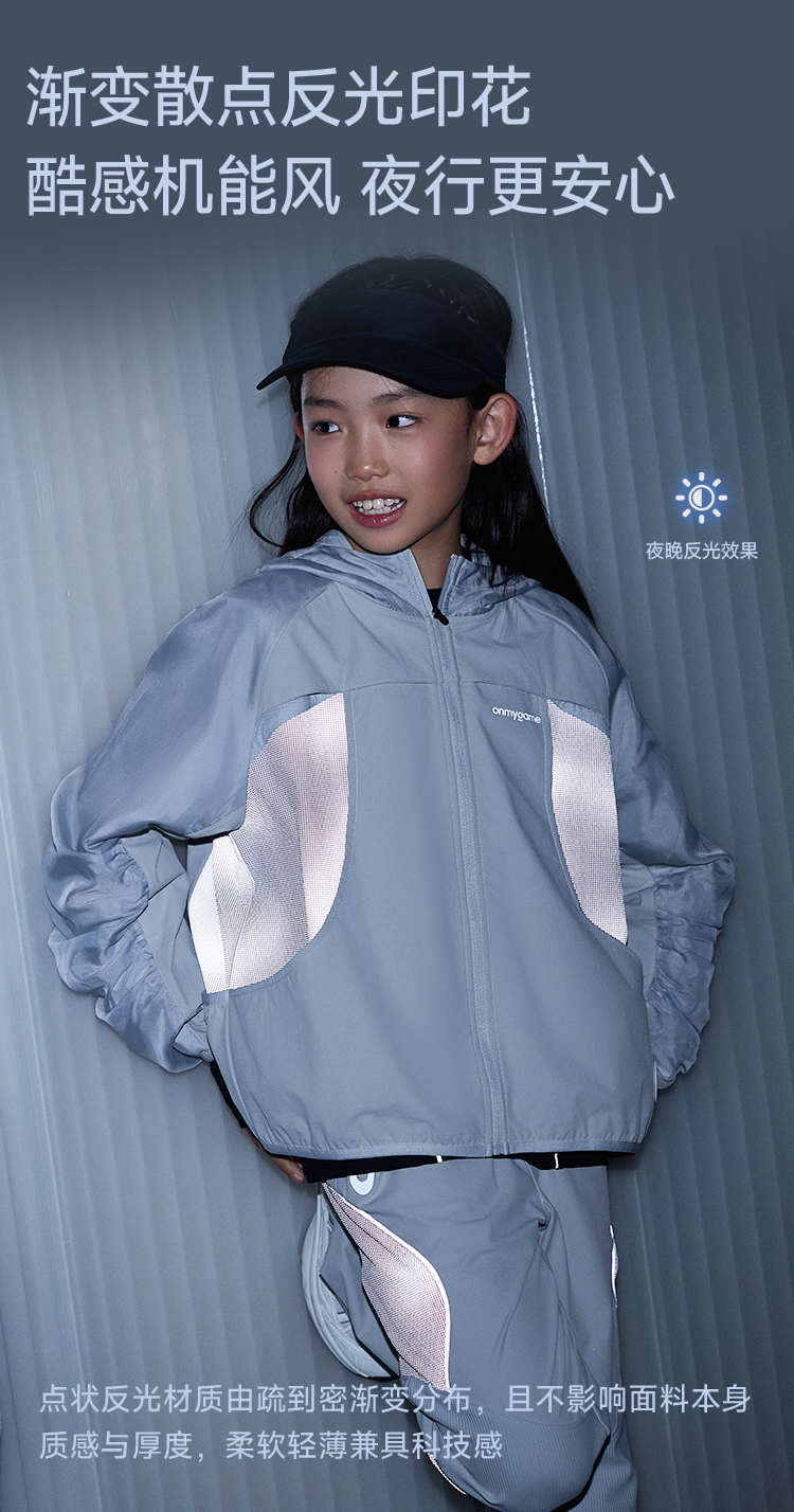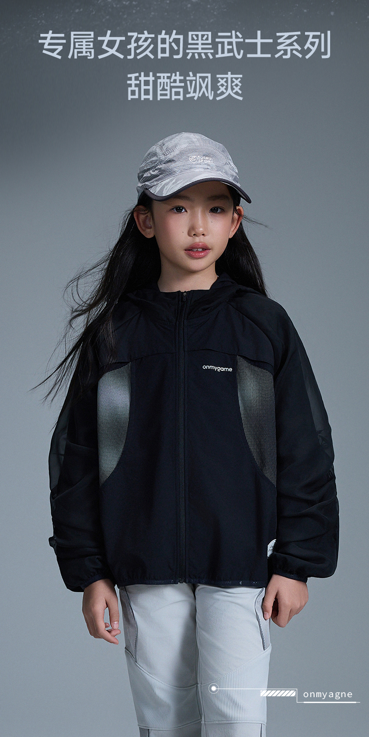 onmygame【黑武士】 女童外套防泼水反光连帽甜酷机能风GQ1T120600