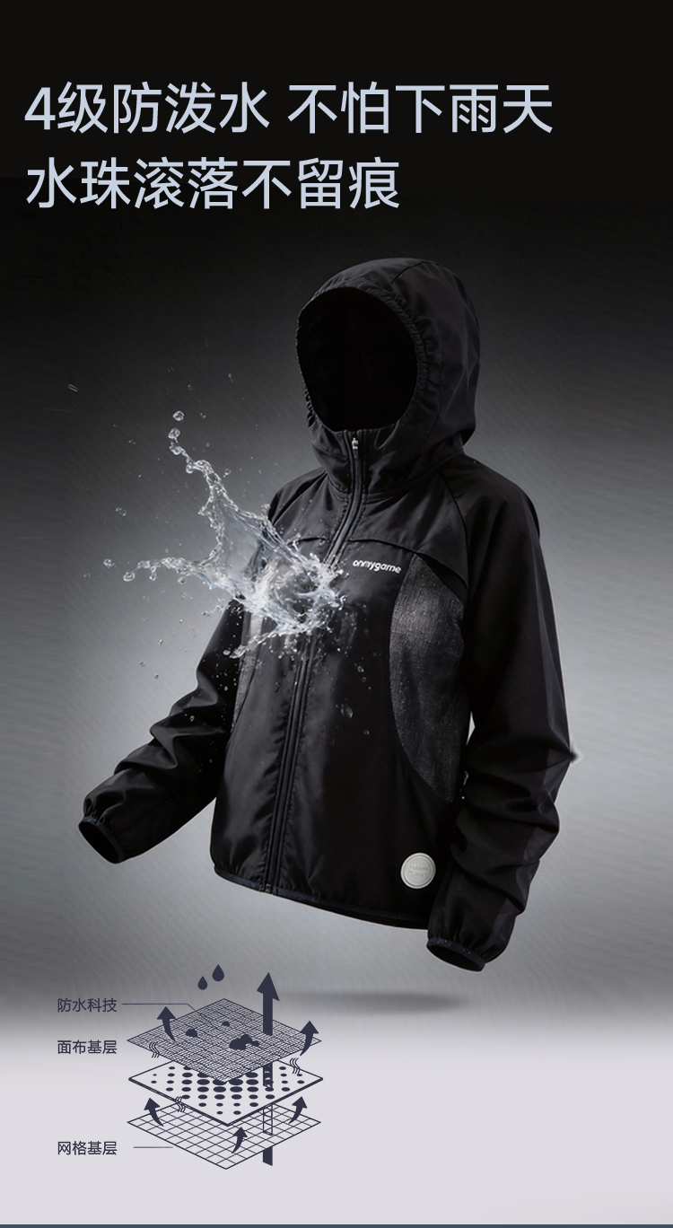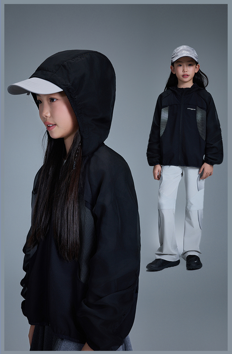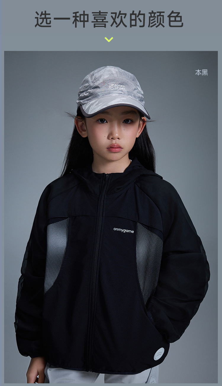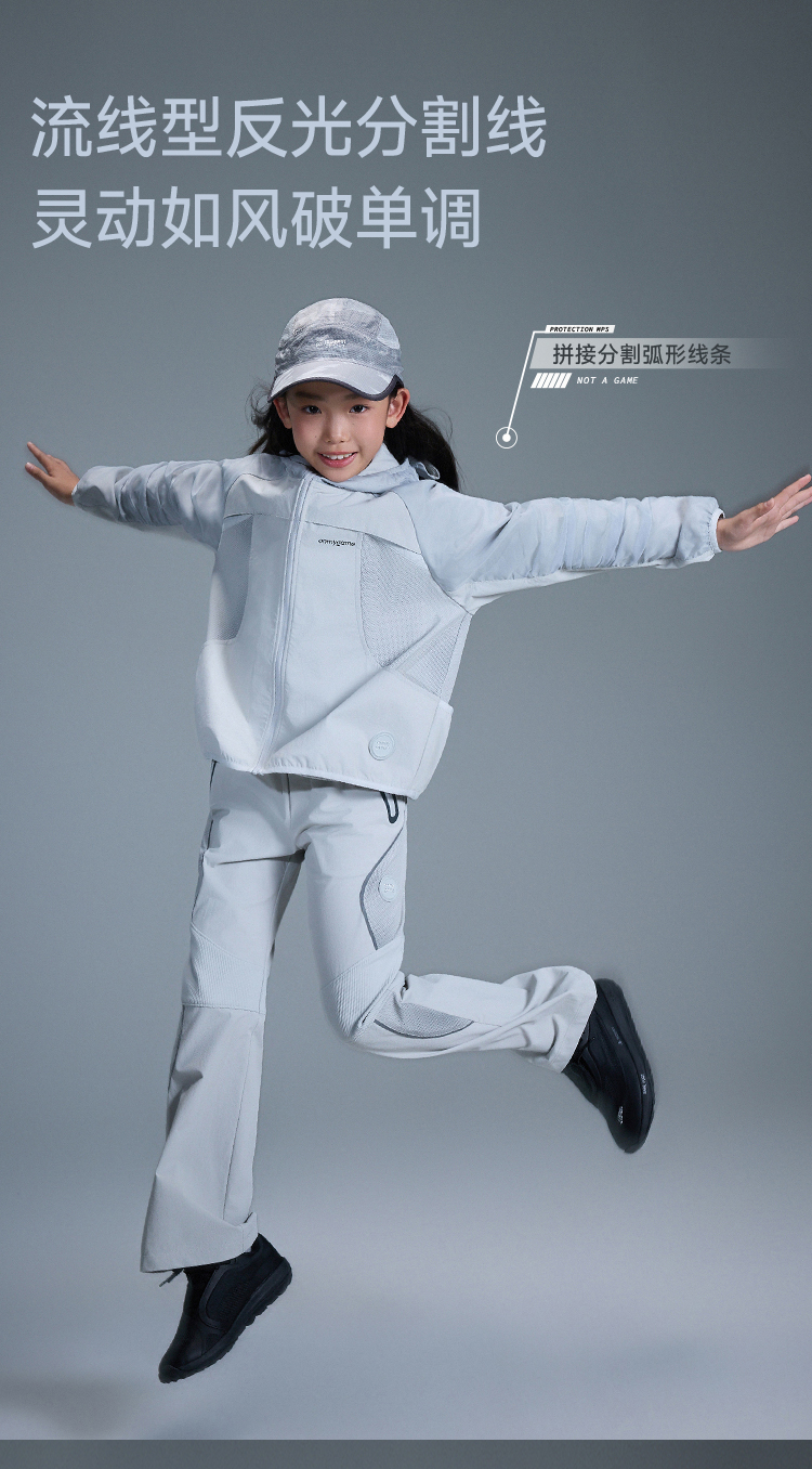 onmygame【黑武士】 女童外套防泼水反光连帽甜酷机能风GQ1T120600