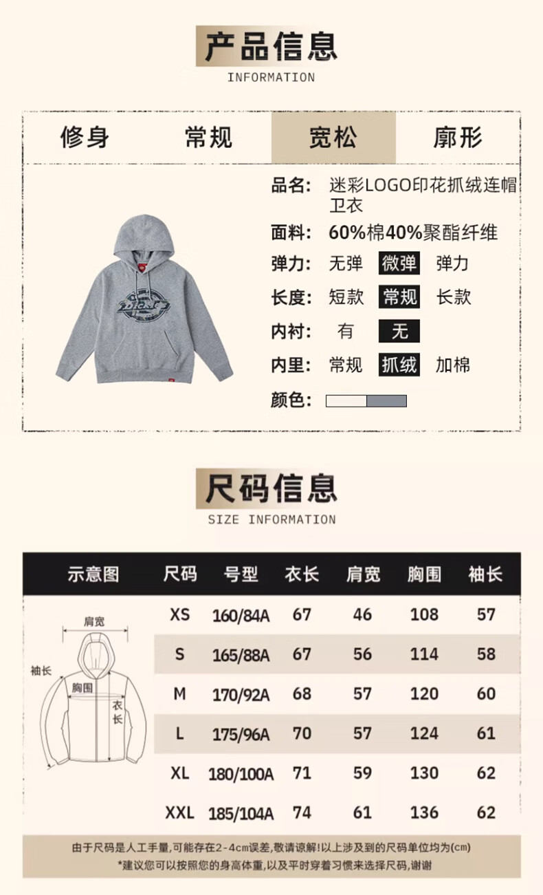 Dickies胸前大LOGO休闲百搭卫衣 情侣同款宽松舒适连帽卫衣 DK0A87EI