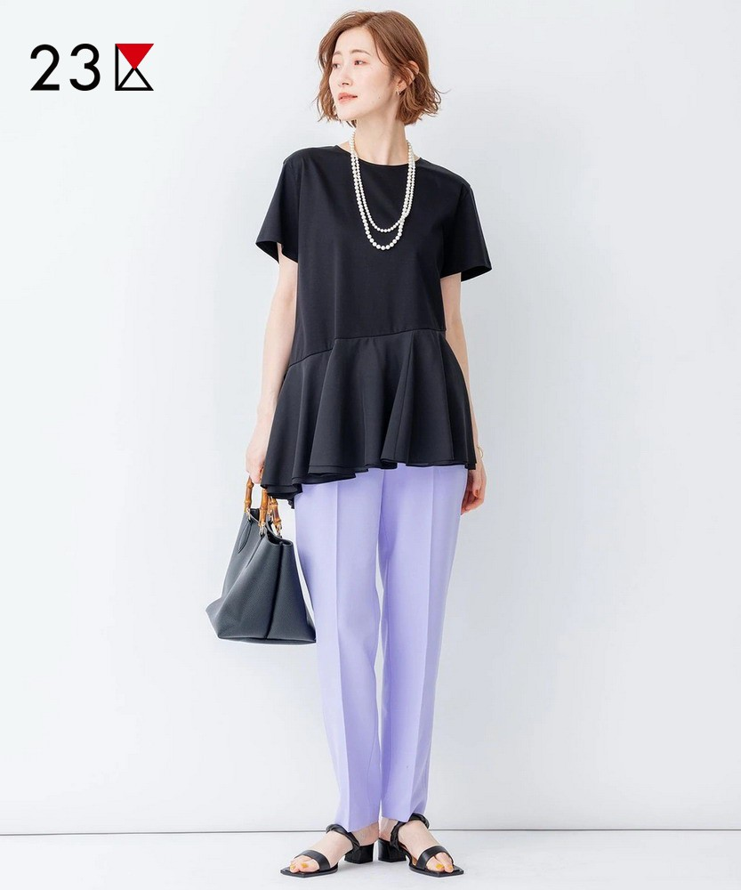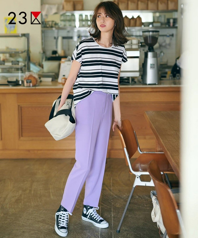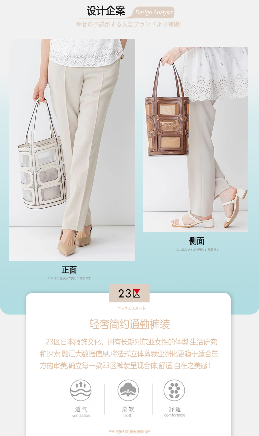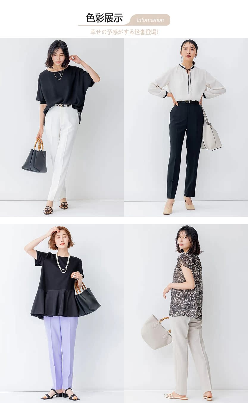 23区日系春季通勤职业OL直筒版半松紧腰长裤休闲烟管裤商场同款