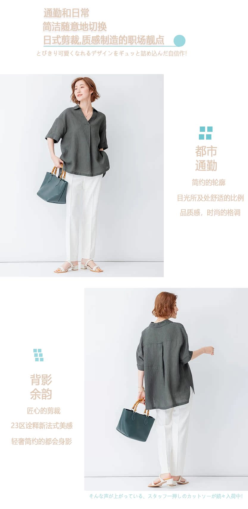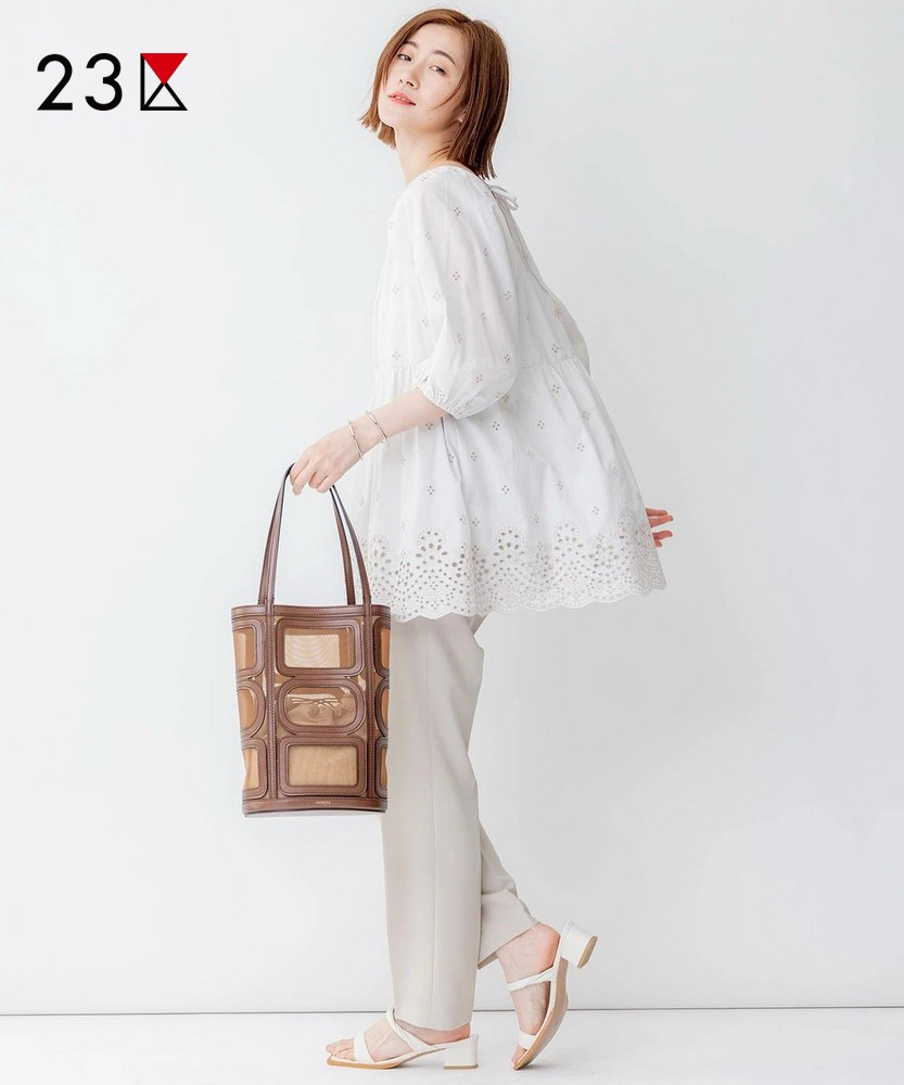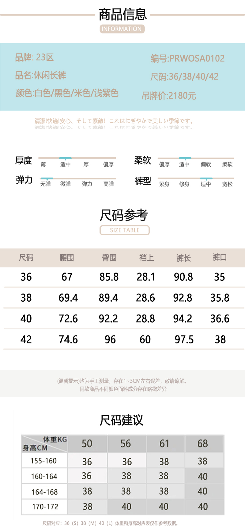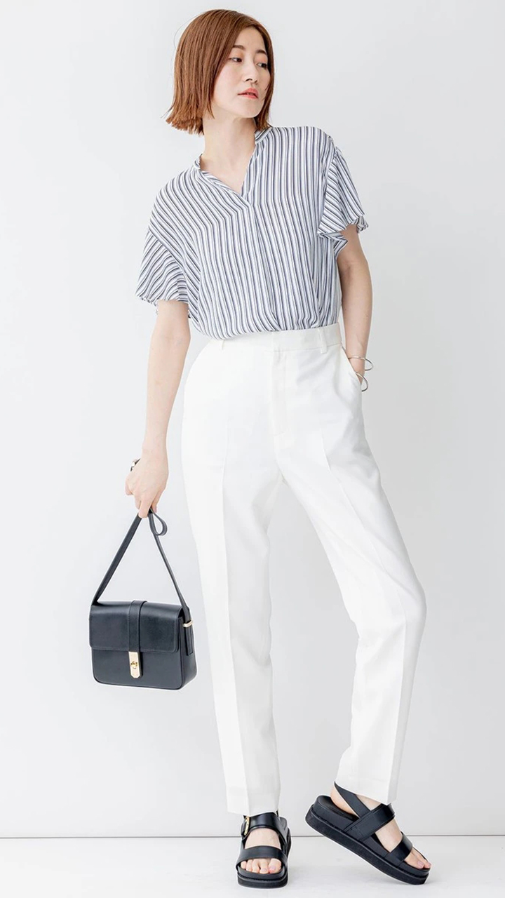 23区日系春季通勤职业OL直筒版半松紧腰长裤休闲烟管裤商场同款