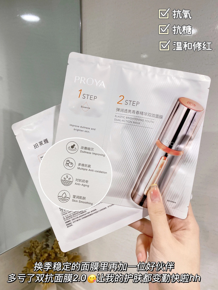 更高效的双抗面膜2.0来一起发力了 精华面膜都是直接到位的那种!! 双抗面膜一定是补足了我熬夜睡不够的那部分皮肤 搭配好的两部曲式面膜直接敷!省心又靠谱