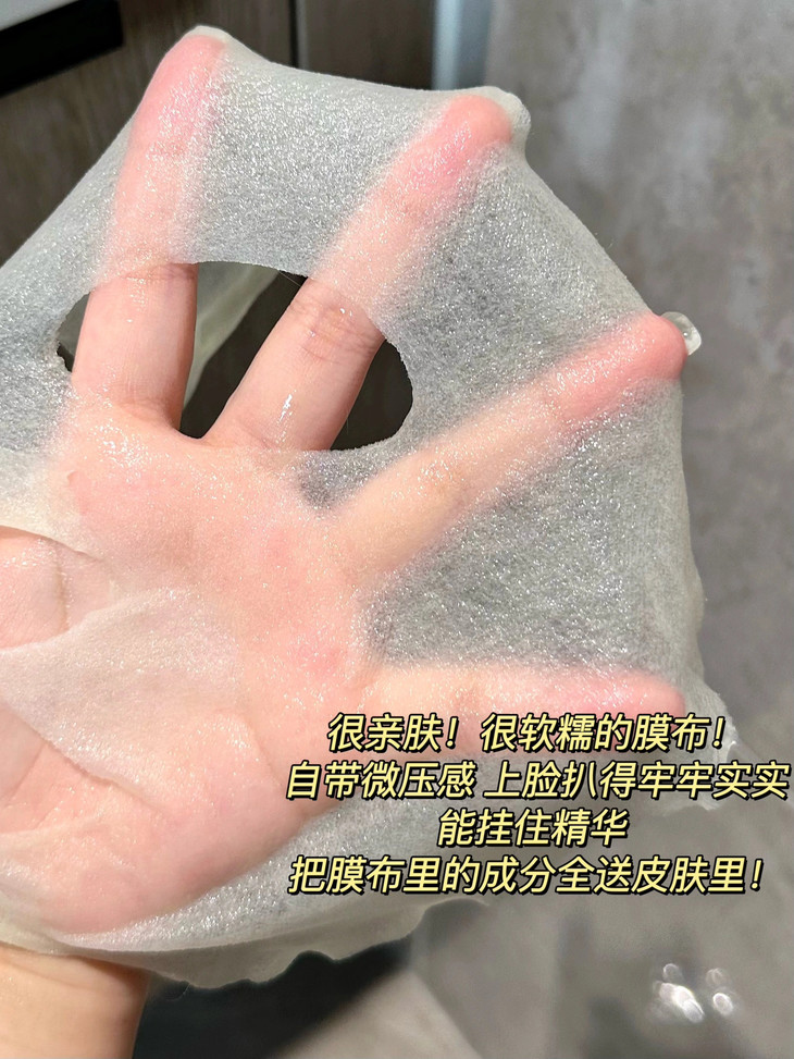一定要夸的是!面膜真的难得的贴脸! 膜布韧性hin好 可以微微延长 很轻松就能调整到 适合自己脸型和五官的状态😋 柔软亲肤的太空棉膜布!