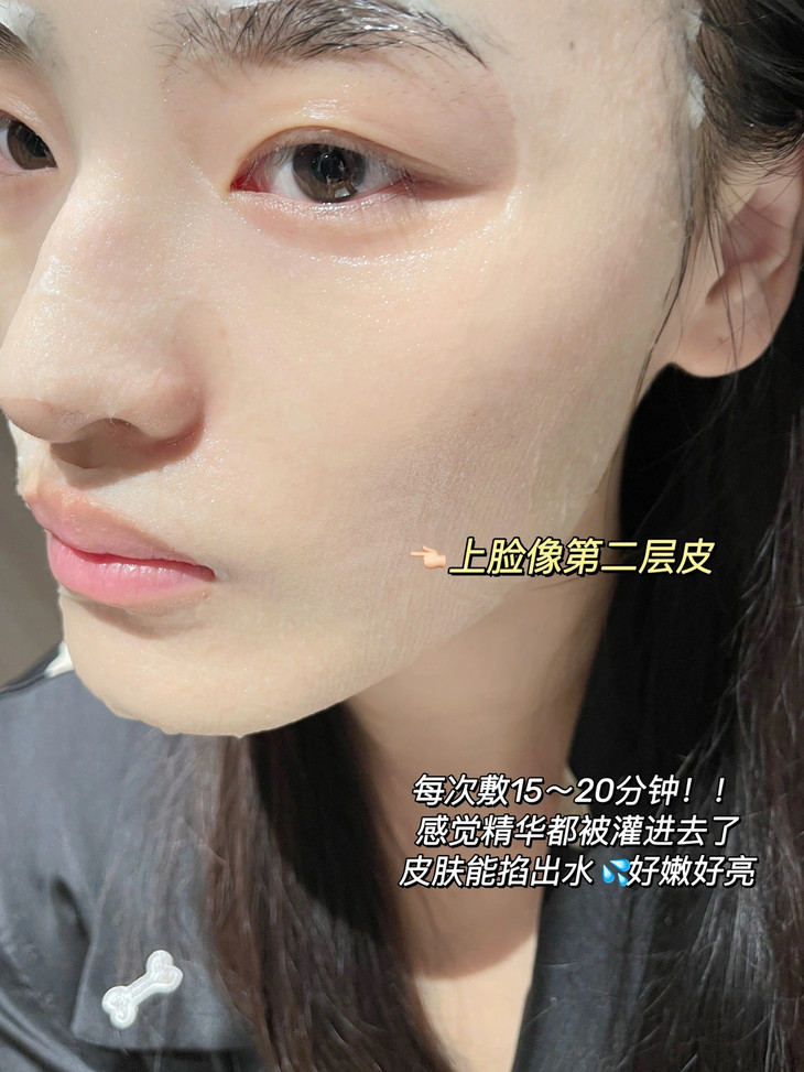 每次敷15~20分钟!! 感觉精华都被灌进去了 皮肤能掐出水💦好嫩好嫩 是那种自然提亮的效果!