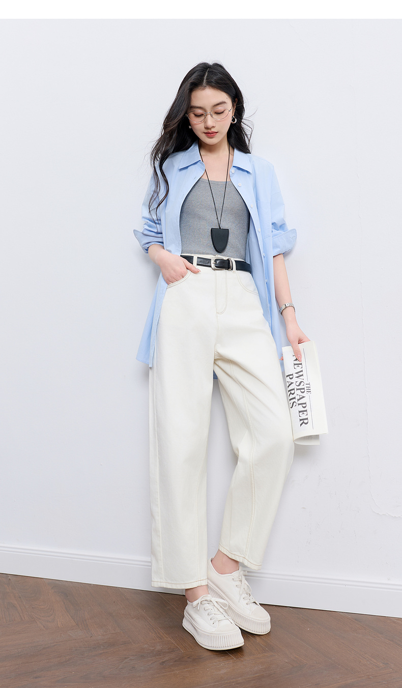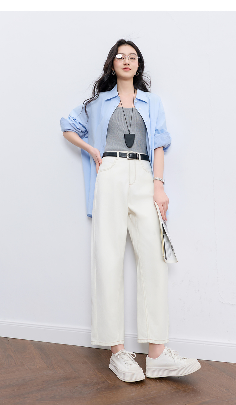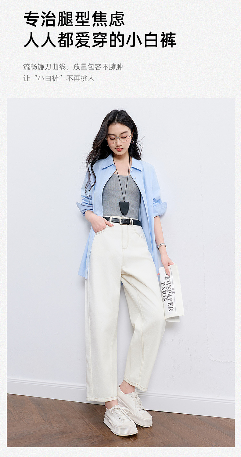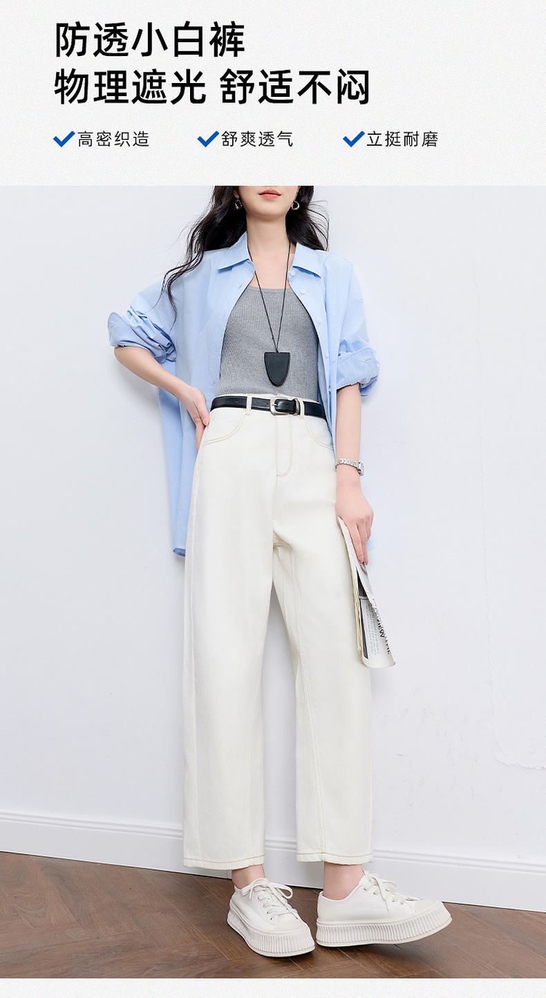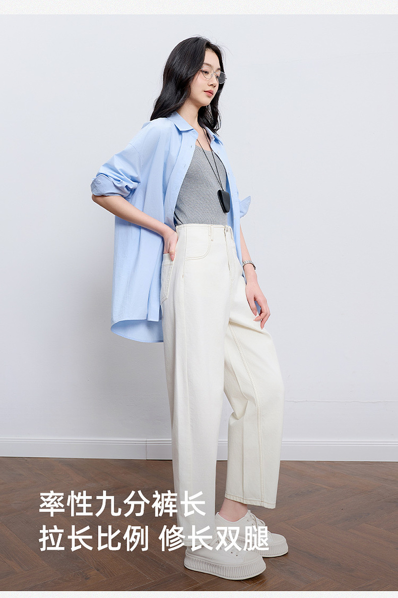 【防透小白裤】三彩2026春季新款休闲牛仔裤高腰宽松九分裤时尚M