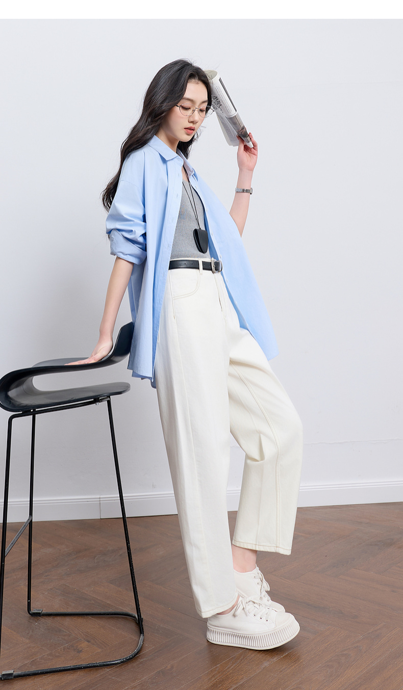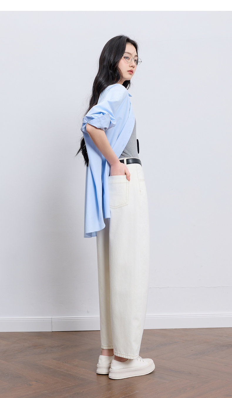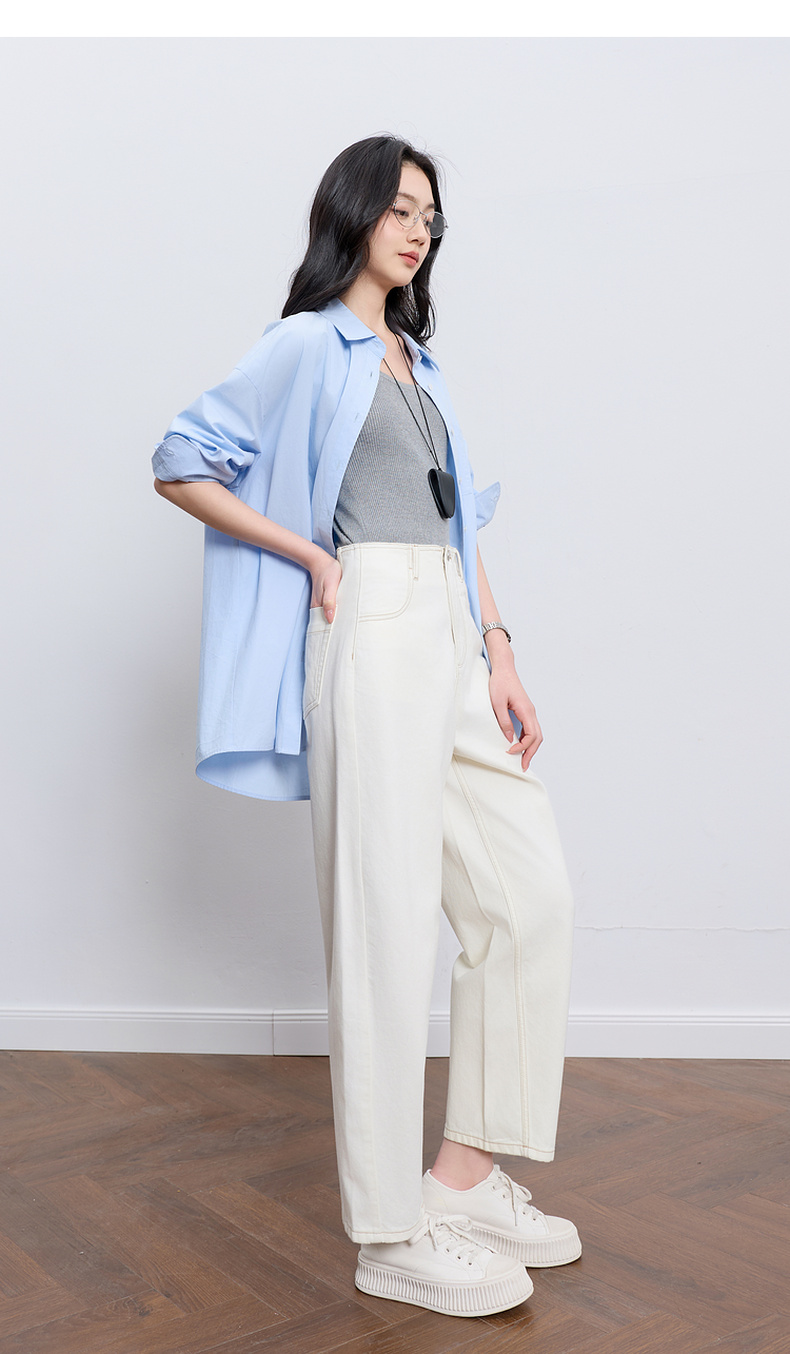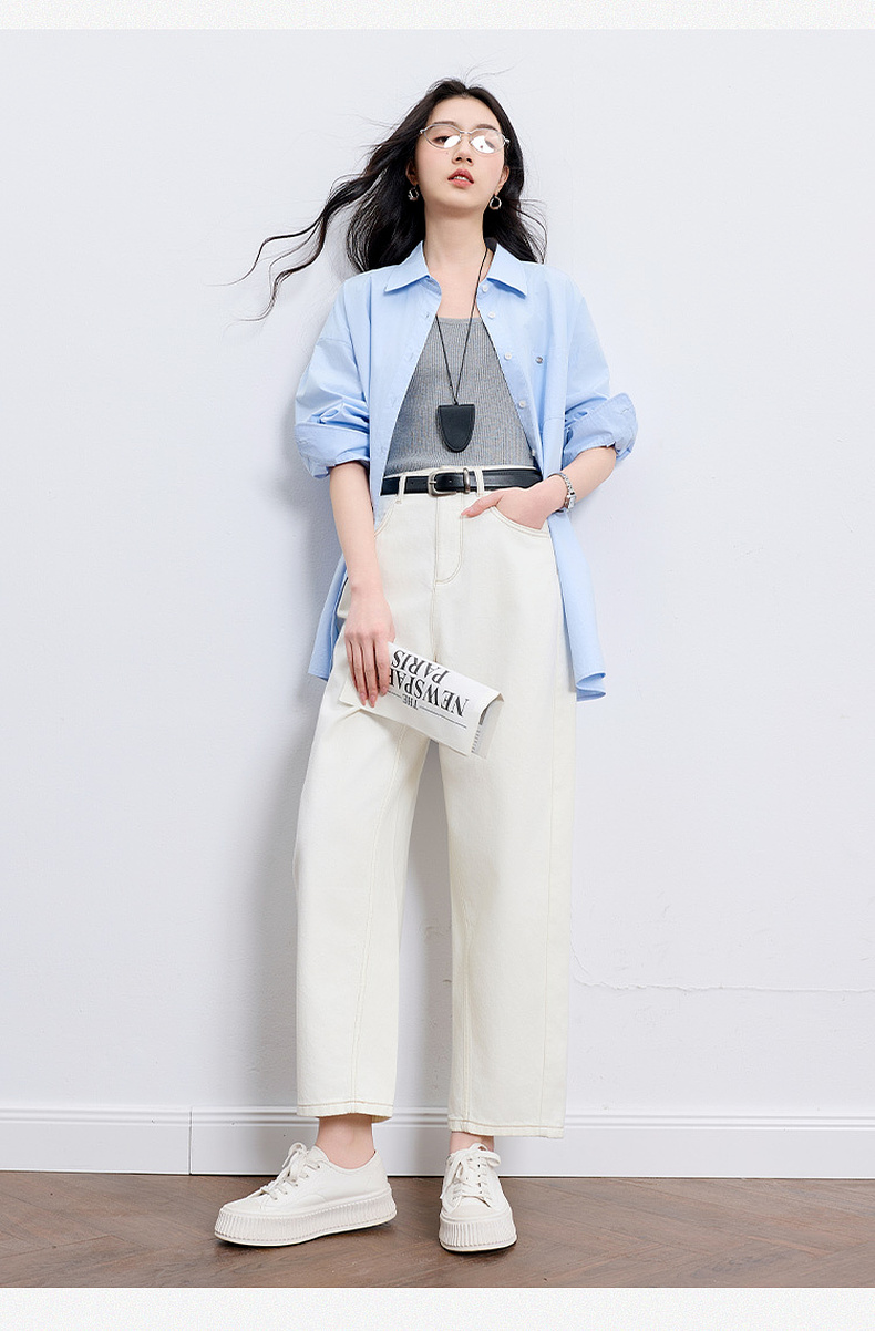 【防透小白裤】三彩2026春季新款休闲牛仔裤高腰宽松九分裤时尚M