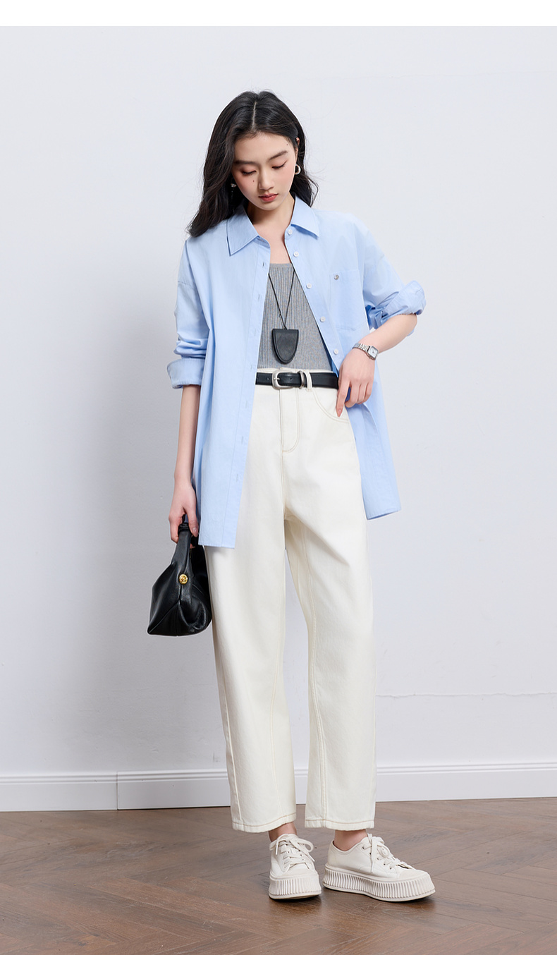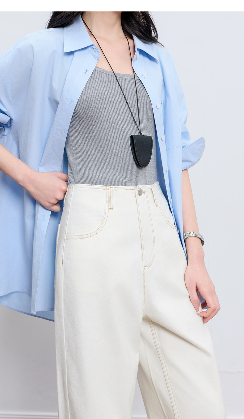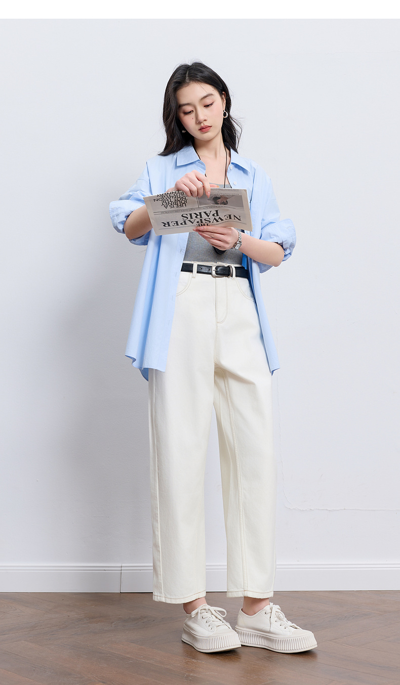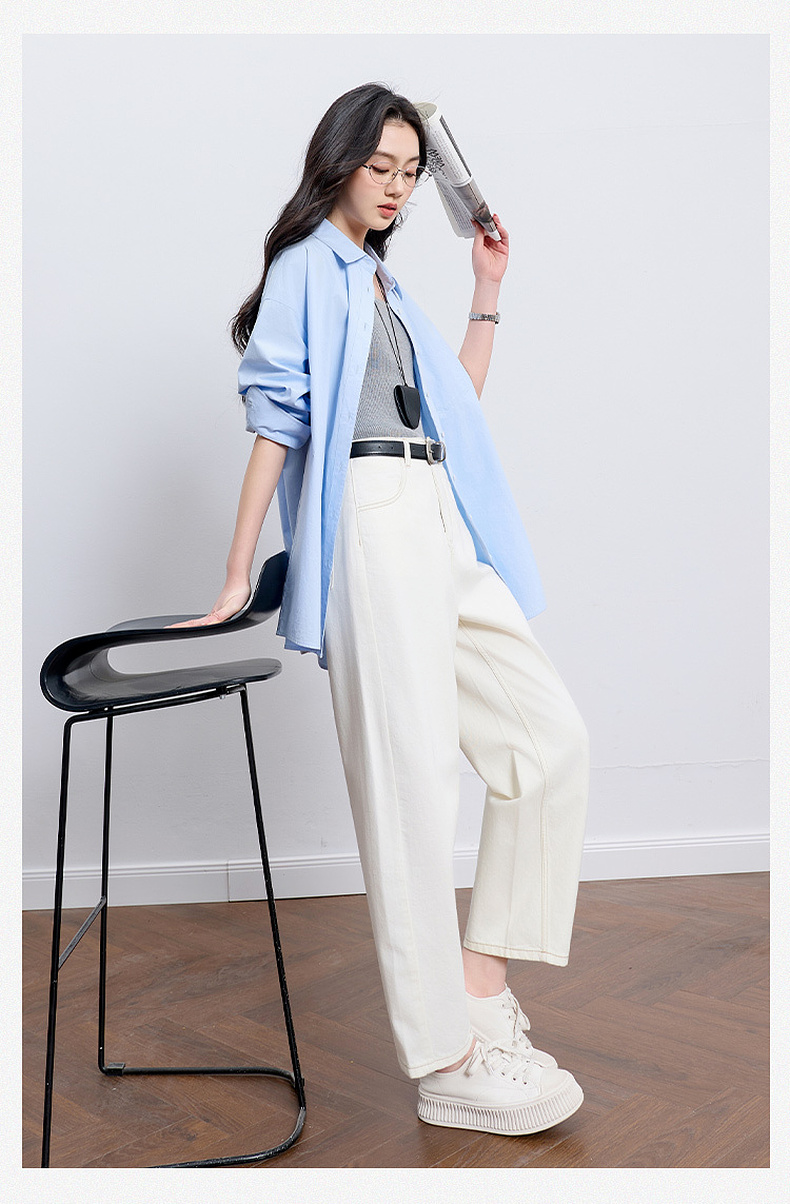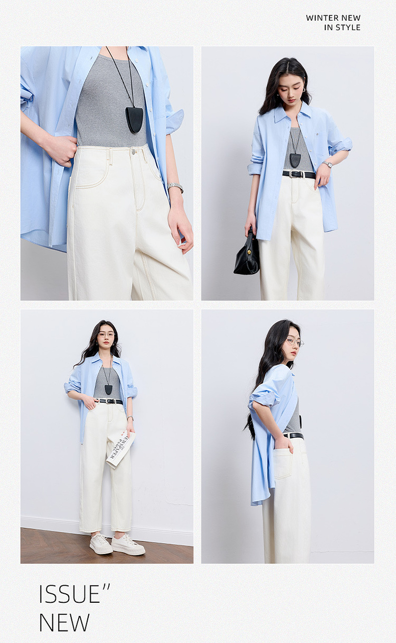【防透小白裤】三彩2026春季新款休闲牛仔裤高腰宽松九分裤时尚M