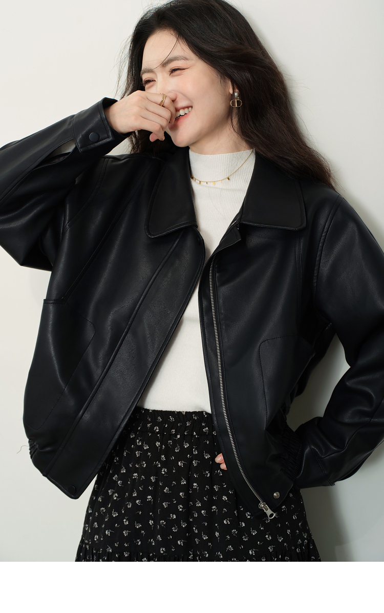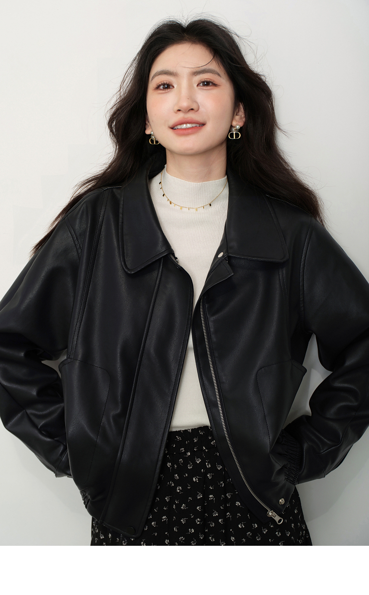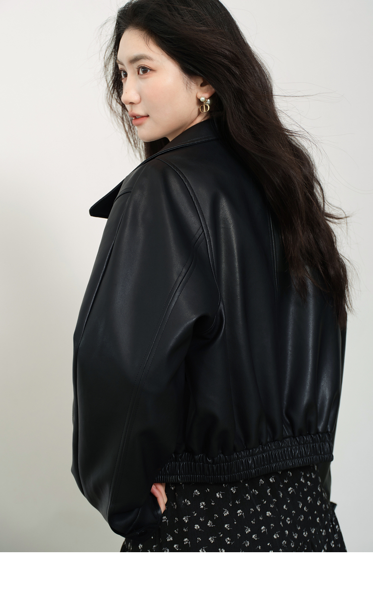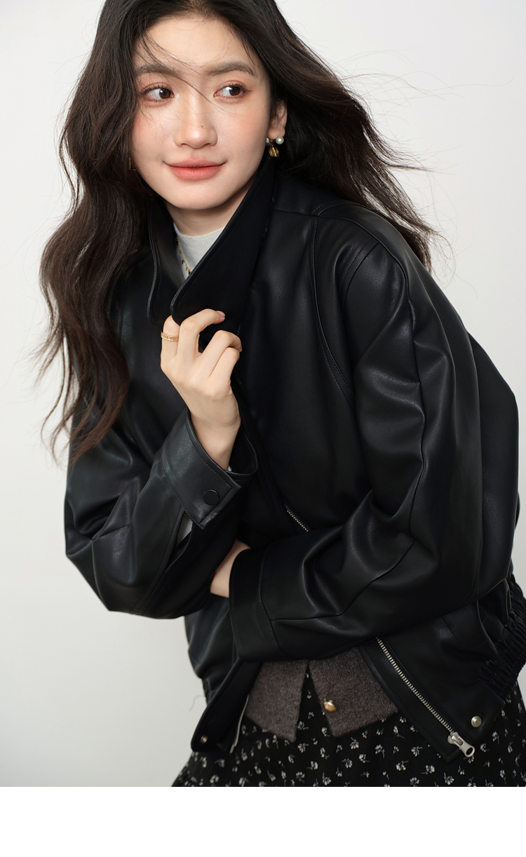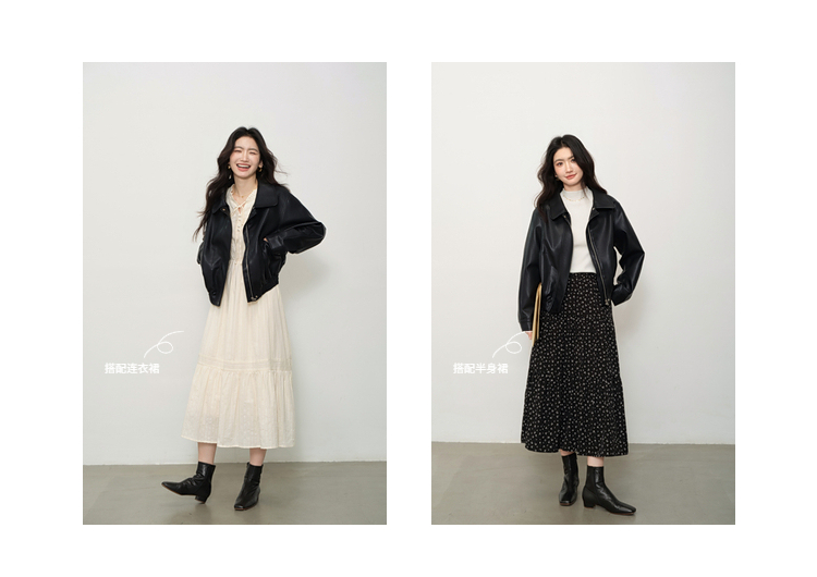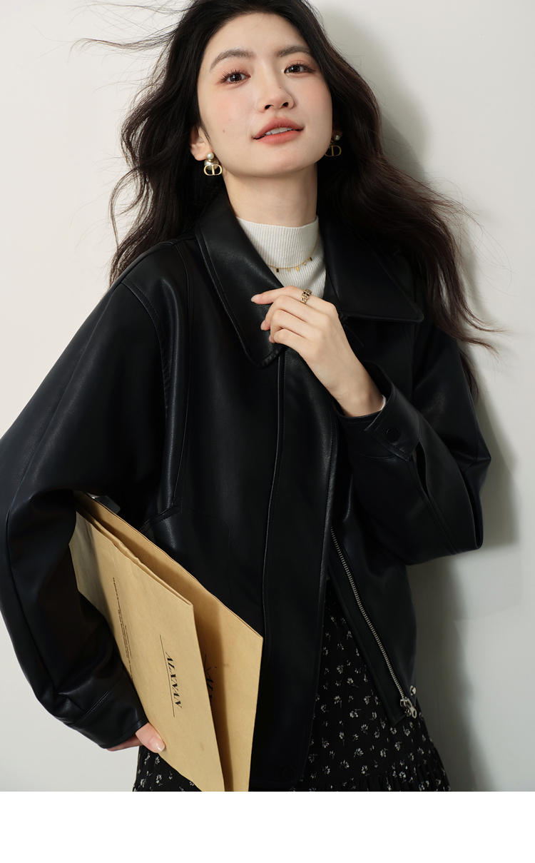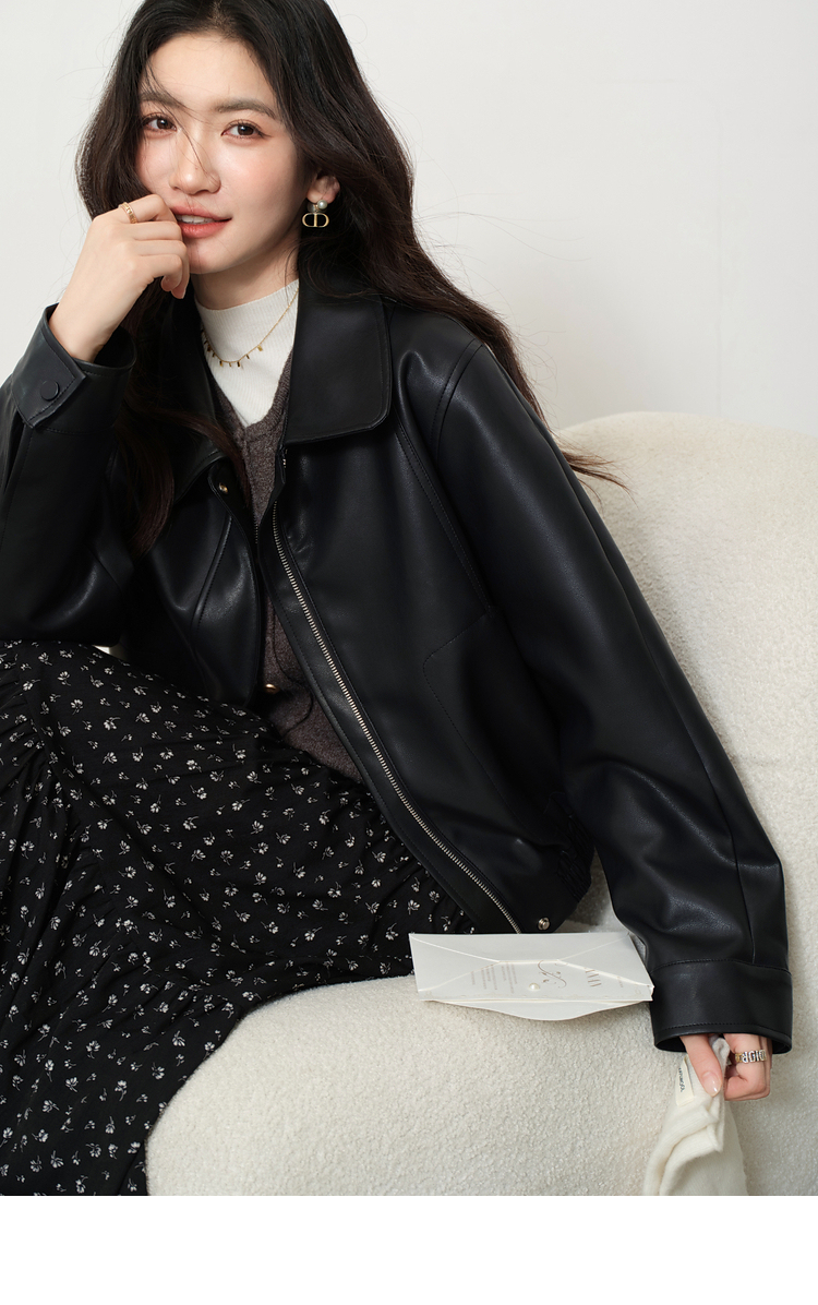 鹿向南「都市主角」短款黑色皮衣外套女秋季新款独特显瘦翻领夹克