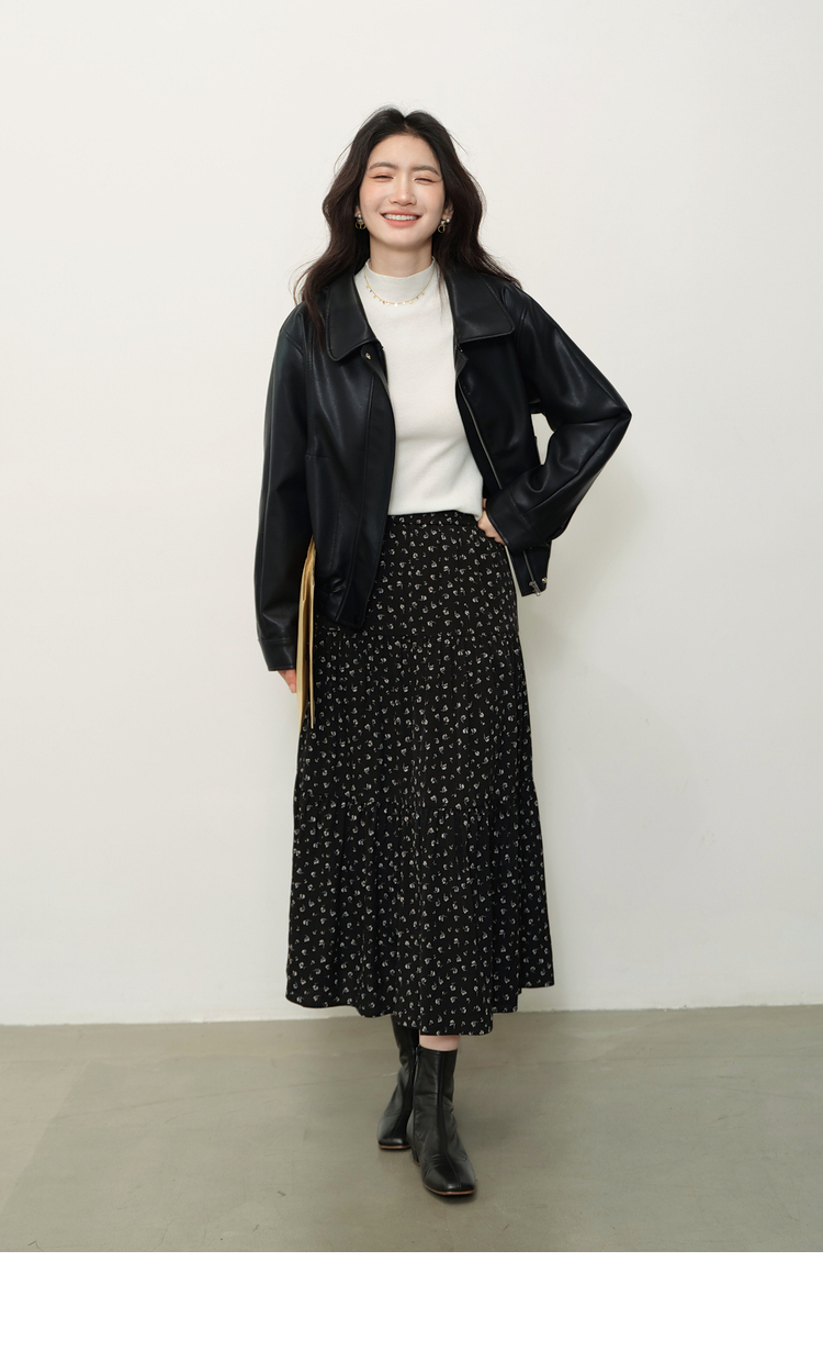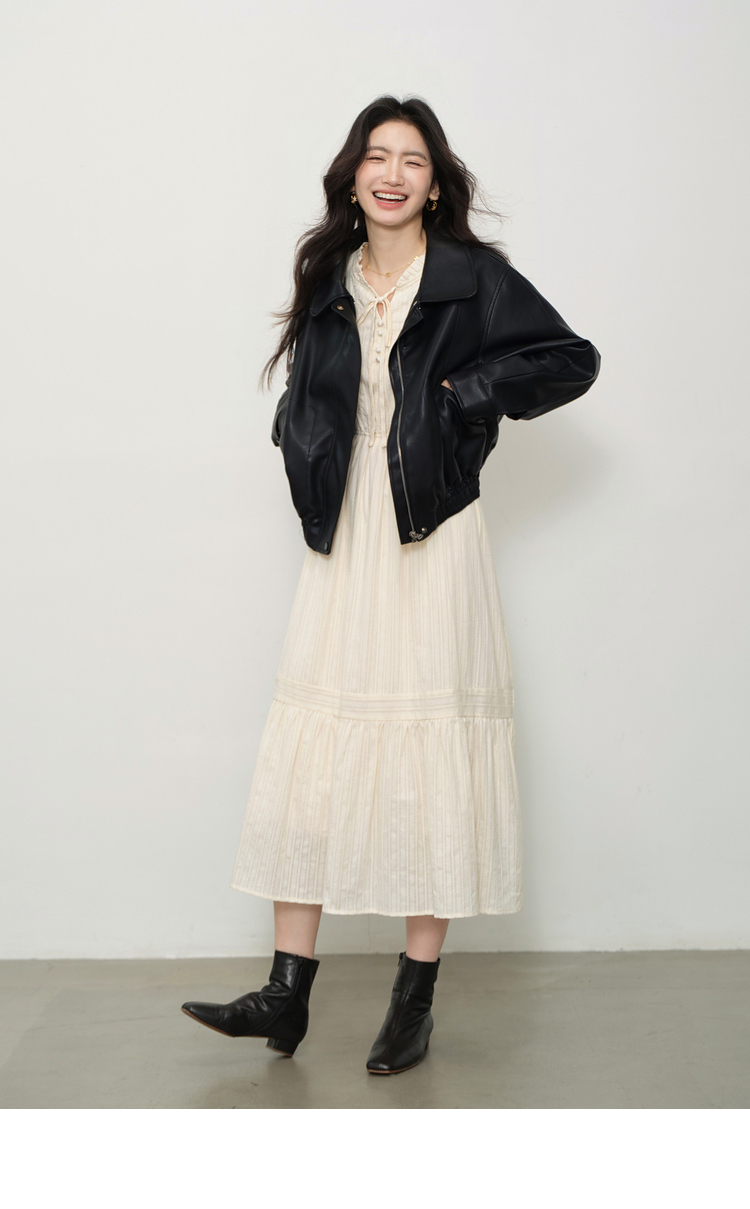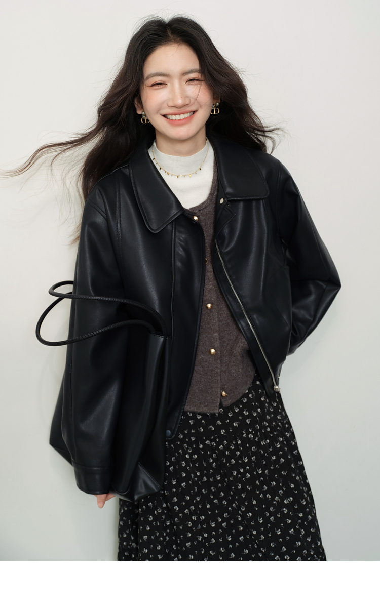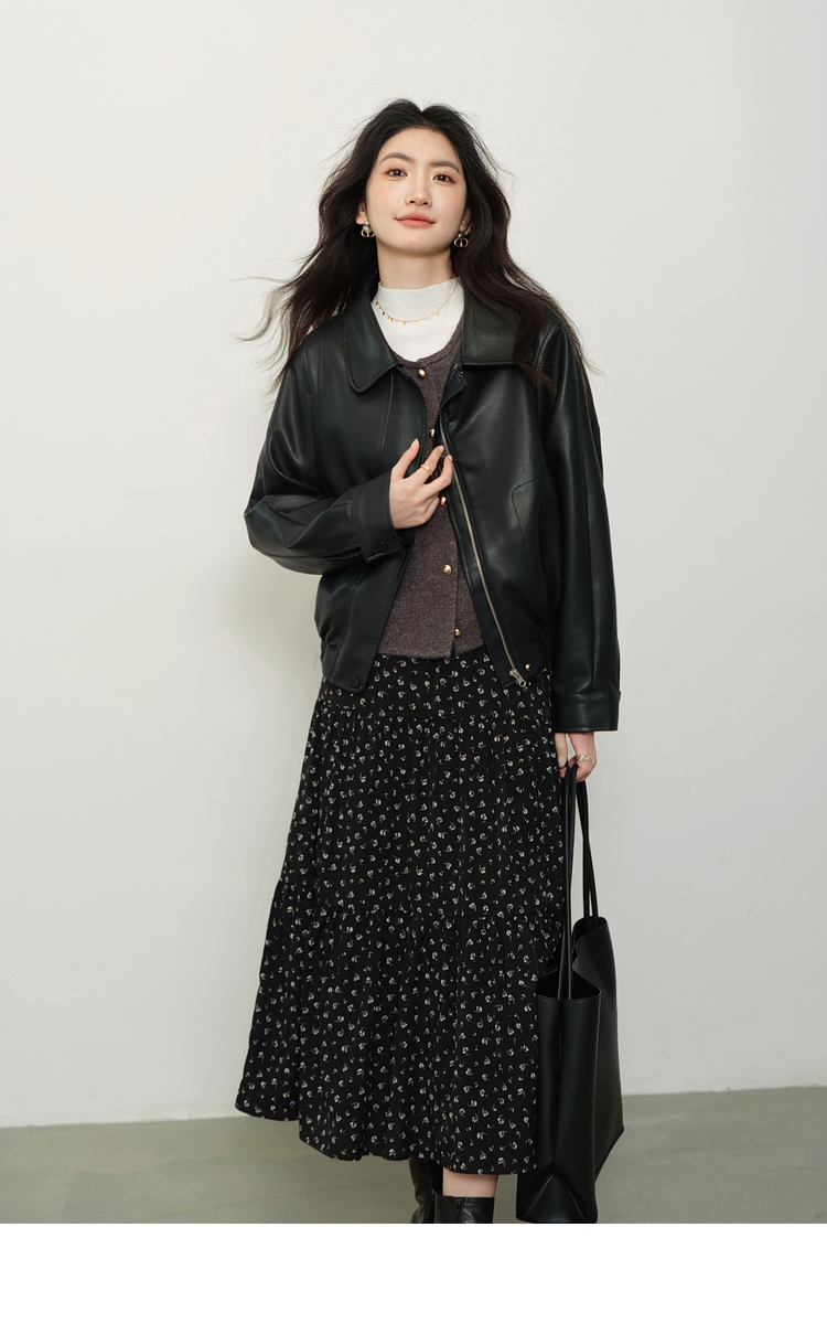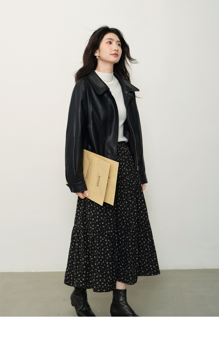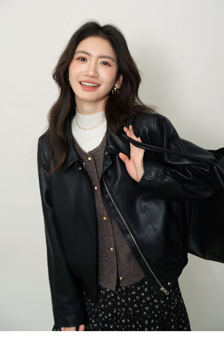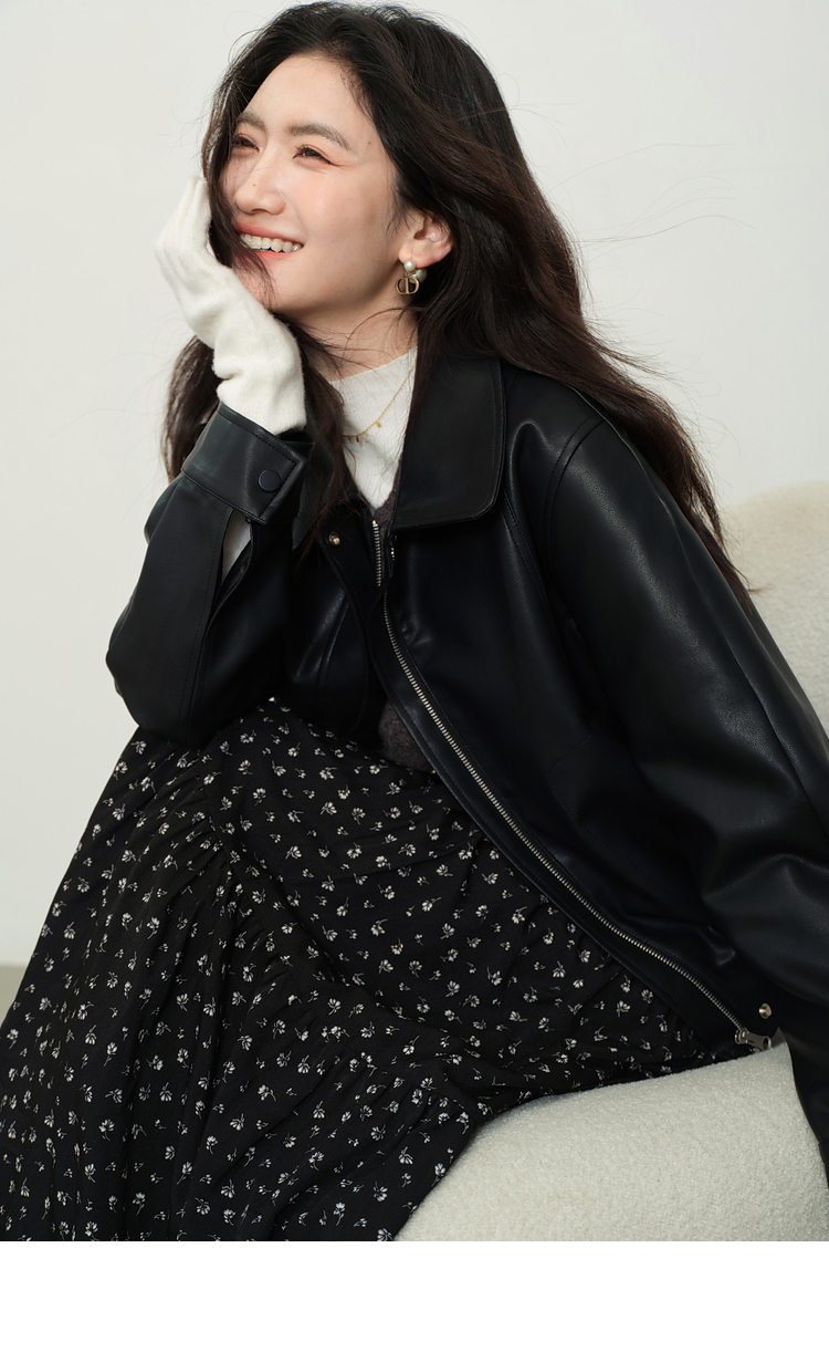 鹿向南「都市主角」短款黑色皮衣外套女秋季新款独特显瘦翻领夹克