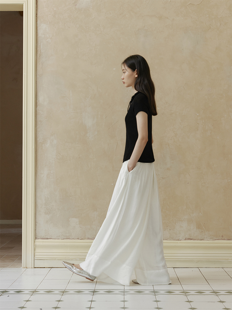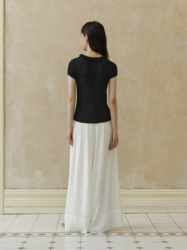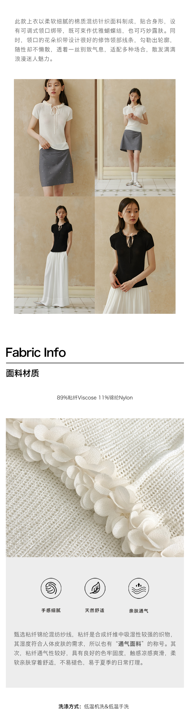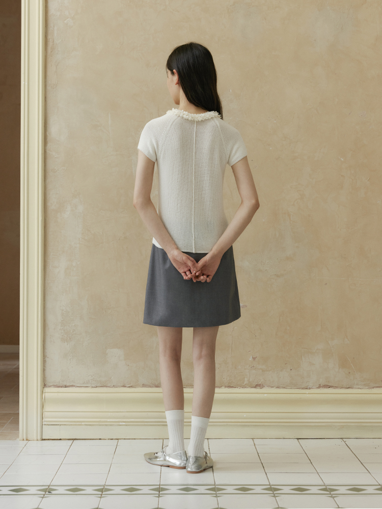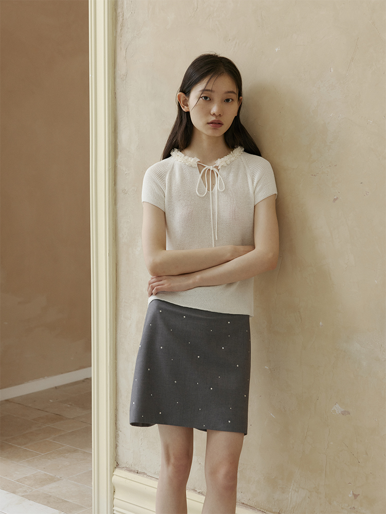 ForPoem 现货 24/SS原创设计夏季立体花边系带修身针织短袖上衣