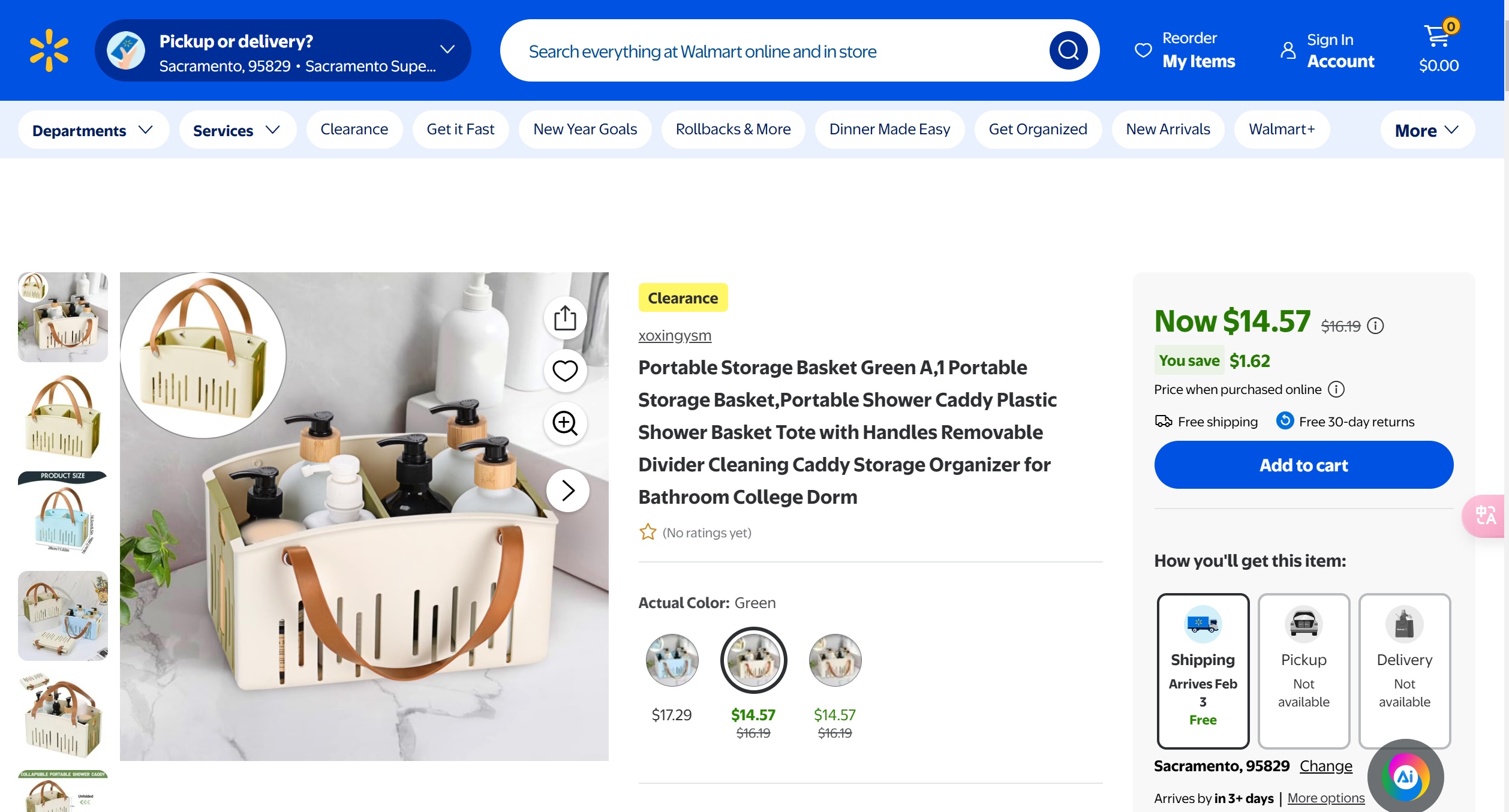 美国沃尔玛 便携式储物篮 淋浴篮 带把手塑料淋浴篮手提包 可拆卸隔板清洁 卫生室储物盒收纳器