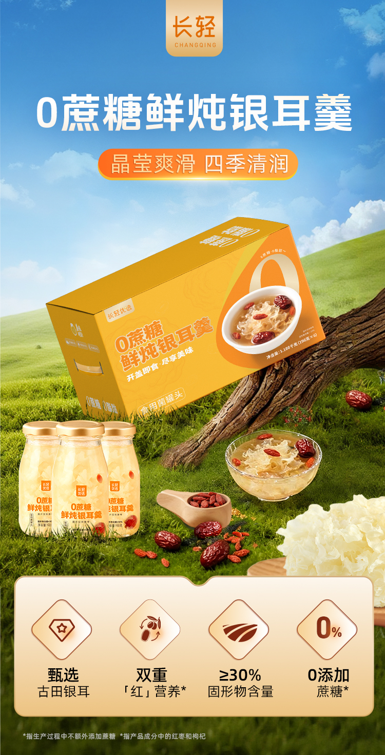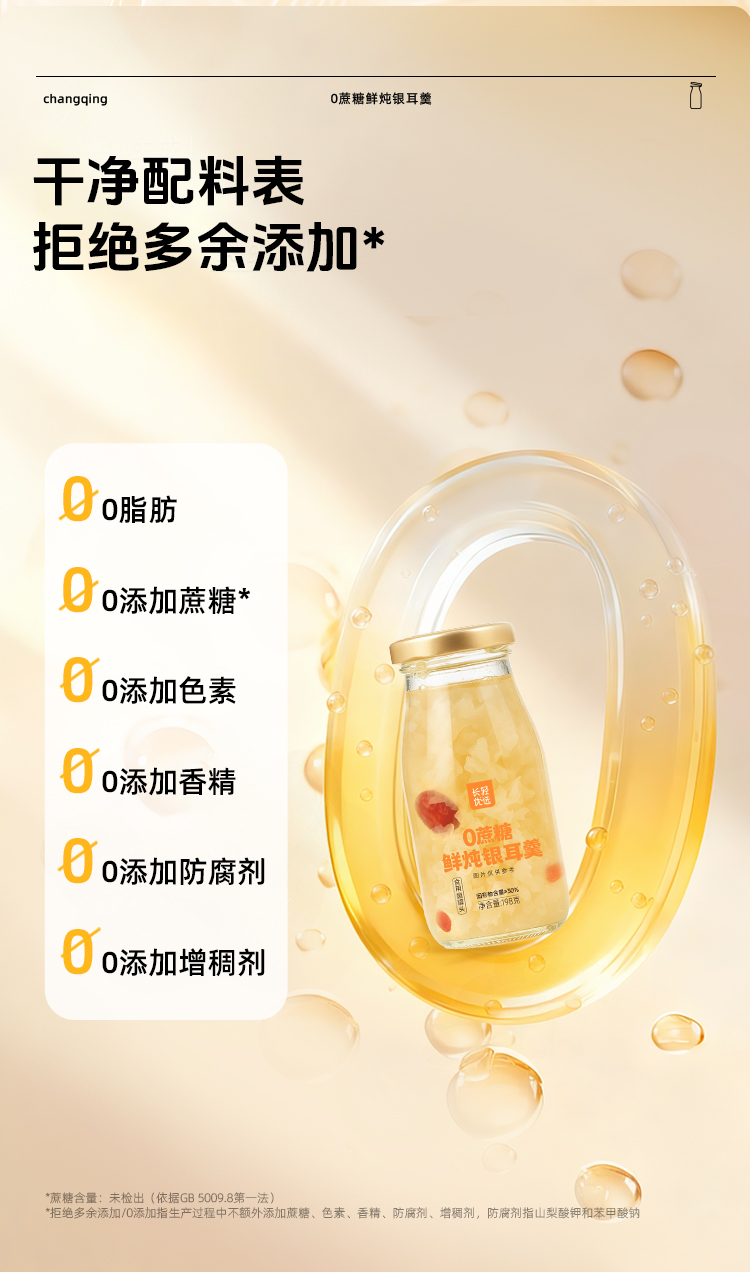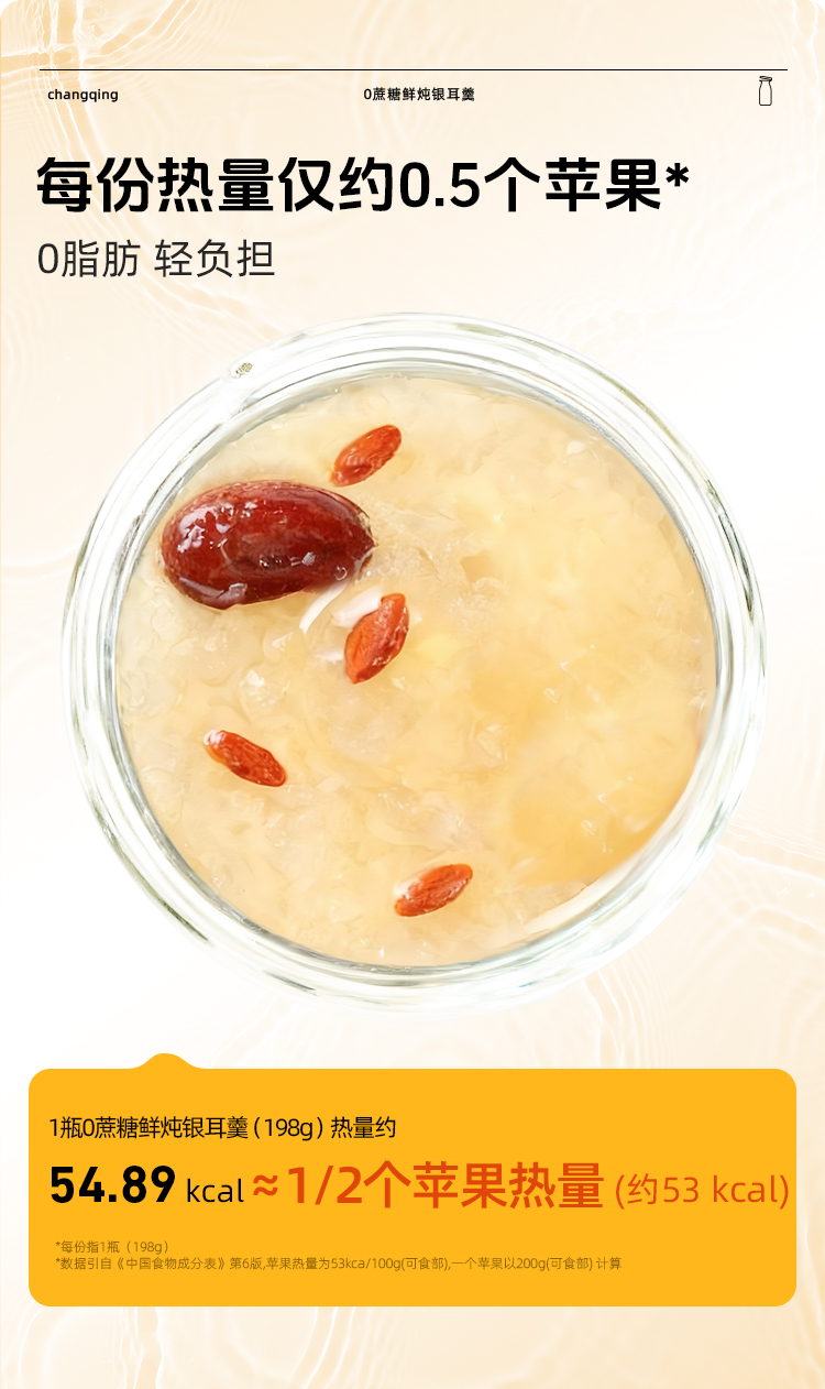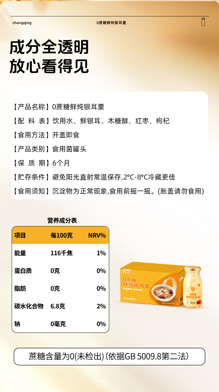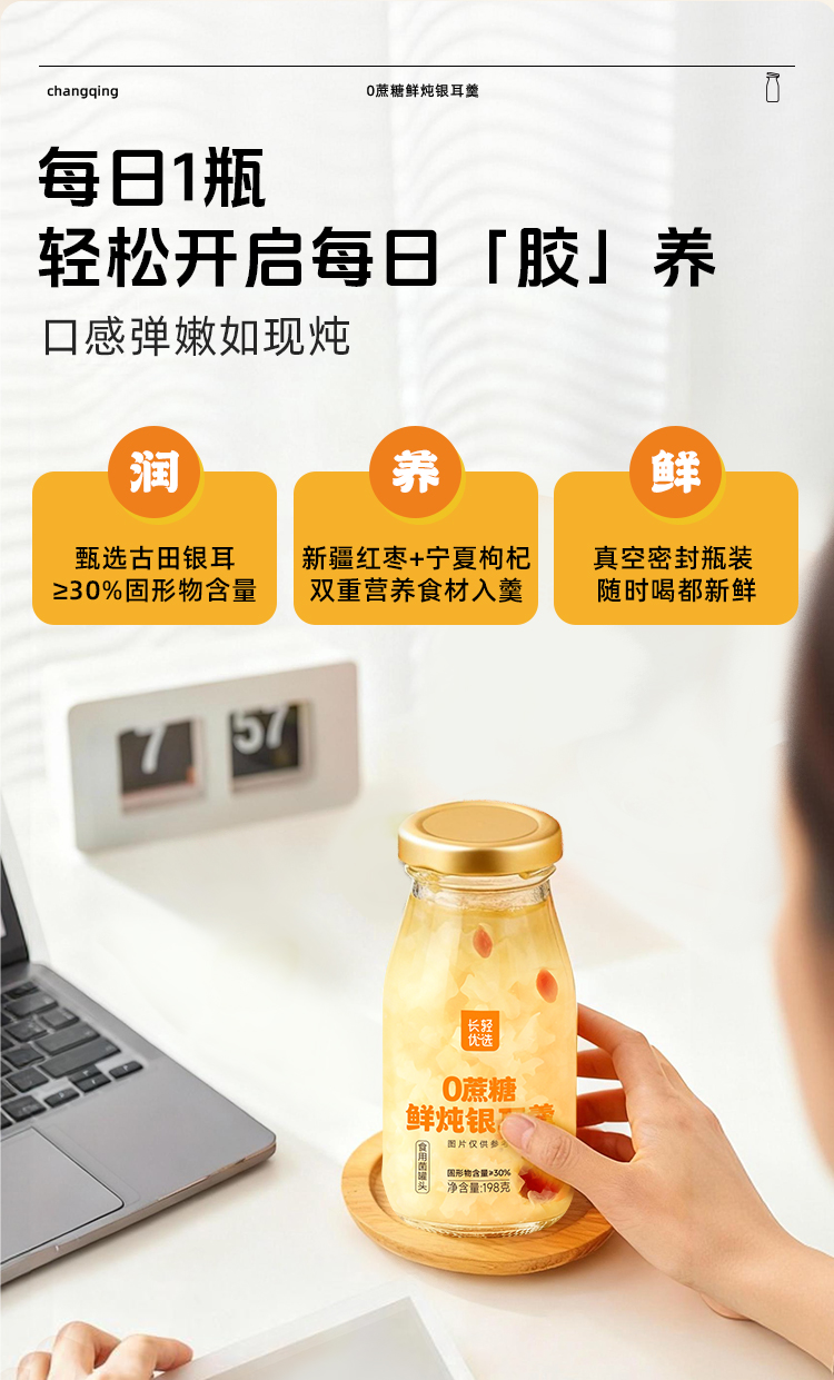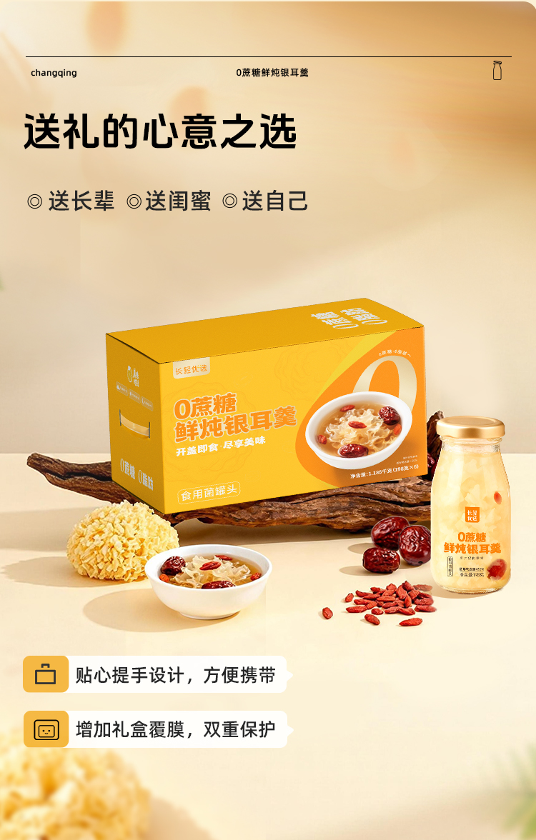 【软糯鲜润】长轻优选 0蔗糖鲜炖银耳羹 198g*6瓶/箱 满满胶质爽滑Q弹