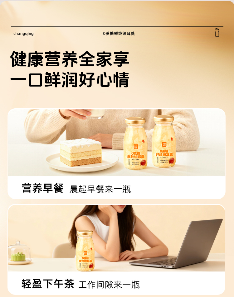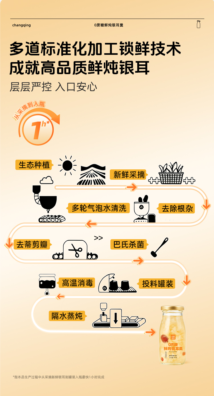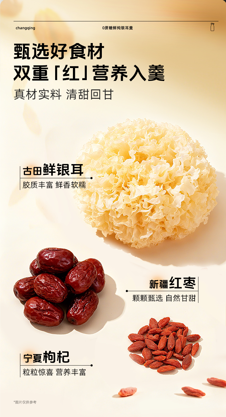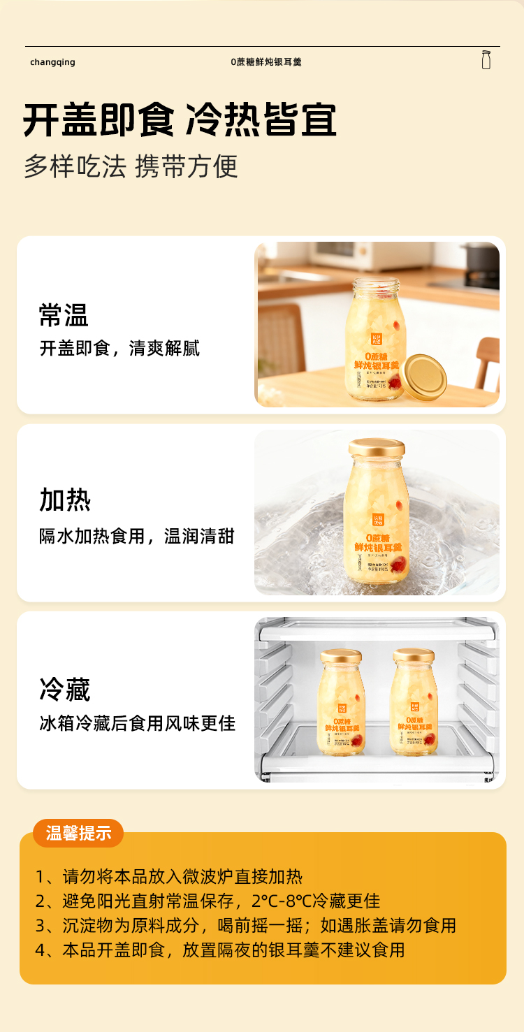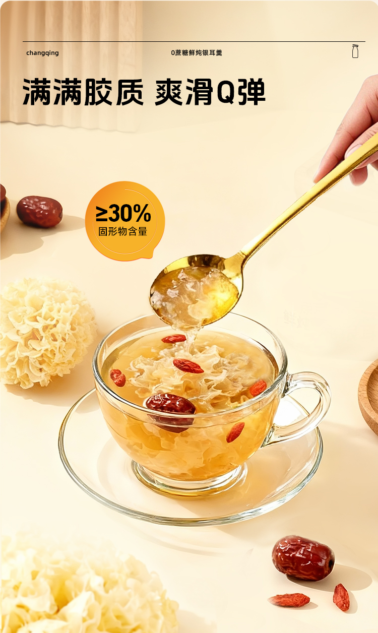 【软糯鲜润】长轻优选 0蔗糖鲜炖银耳羹 198g*6瓶/箱 满满胶质爽滑Q弹
