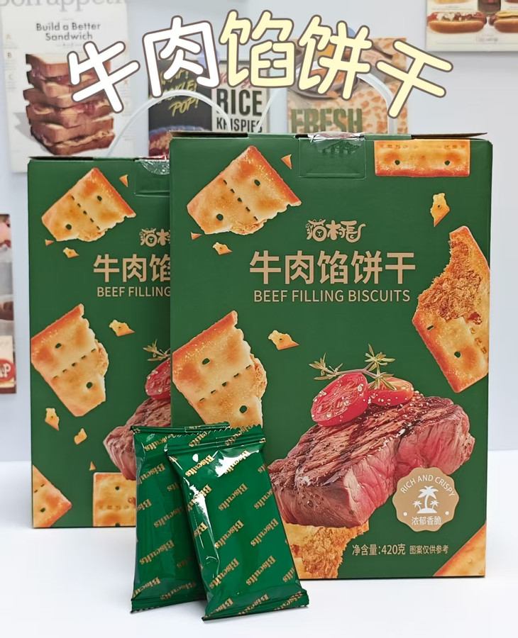 【商品名称】牛肉馅饼干礼盒 【上架规格】420g*2箱(共64小包) 【保质期】8个月 【生产日期】最新(随批次更新) 【储存条件】置于阴凉干燥处贮存,避免阳光直射 【发货地】福建晋江 【生产地】福建漳州 【发货快递】韵达 【不发货地区】青海、甘肃、宁夏、内蒙、新疆、西藏及港澳台地区 【加运费地区】北京、上海+1元/件 【发货时效】72小时 【售后规则】 1、食品类不支持7天无理由退换货,礼盒类产品不支持拦截拒收 2:若收到产品有质量问题或者破损少件,请签收24小时内对产品拍照+快递箱面单照片联系售后处理 3:个人喜好/口味问题不在售后范围内