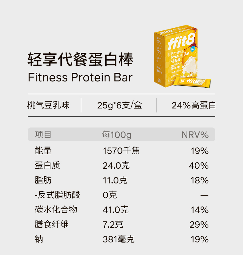 【乐刻甄选】ffit8桃气豆乳蛋白棒12支/盒