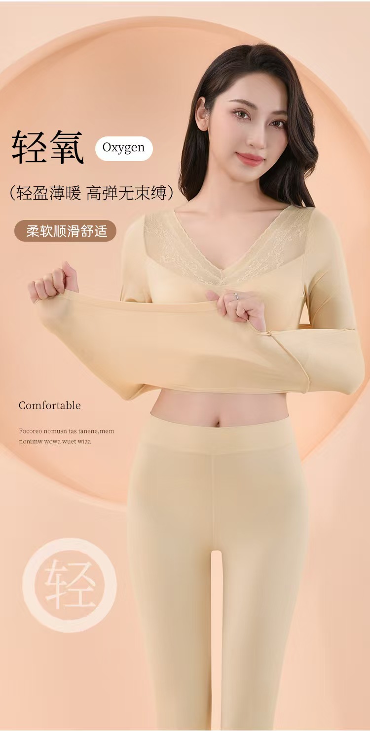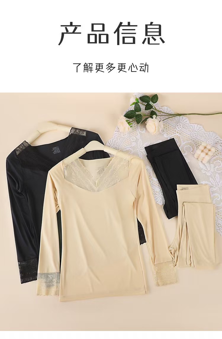 【秋鹭】25906款号超薄面膜肌底衣女士秋衣秋裤恒温隐形美体蕾丝边保暖套装—rxs