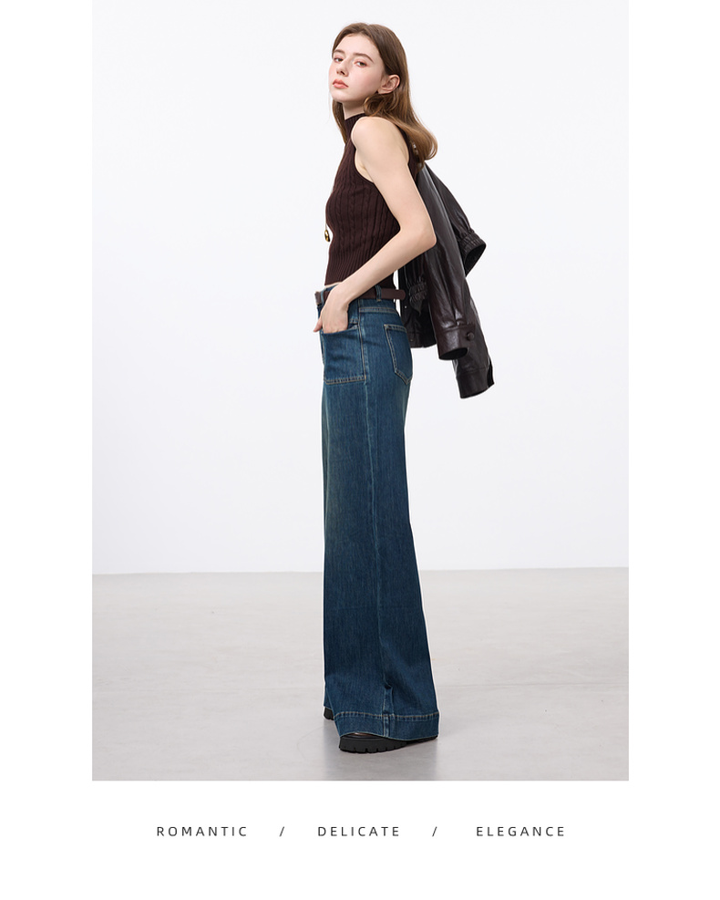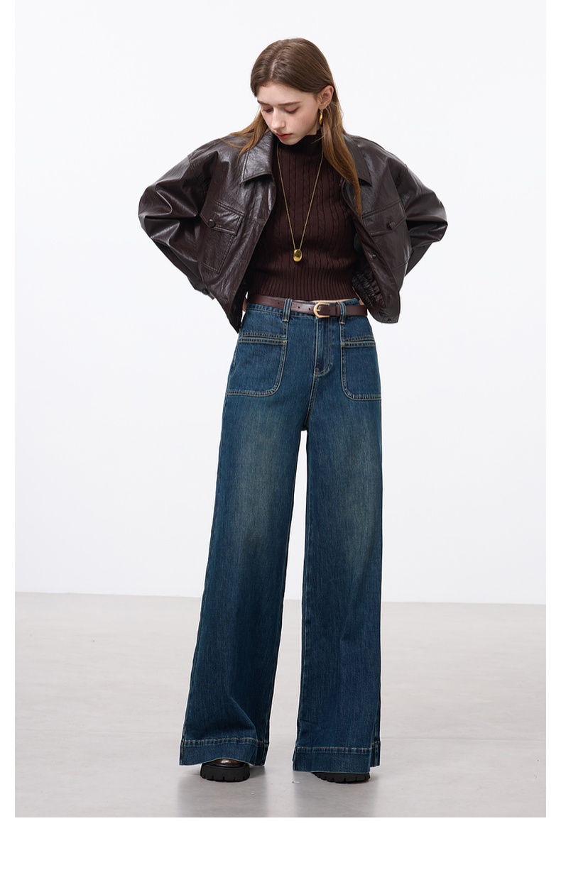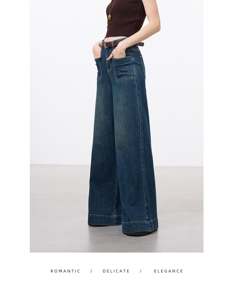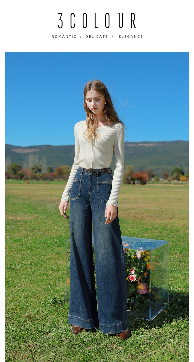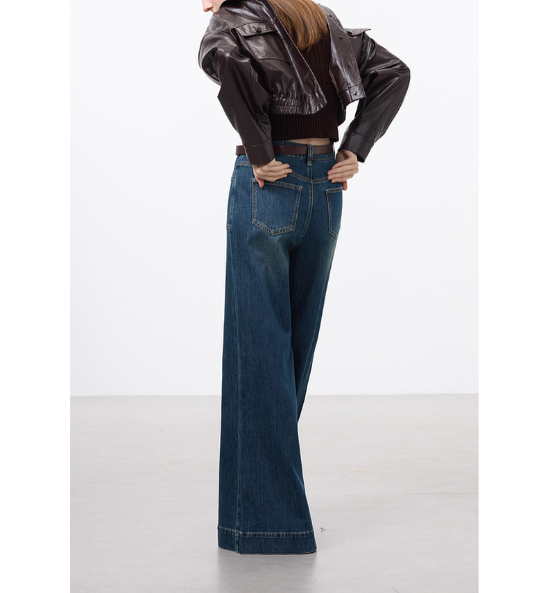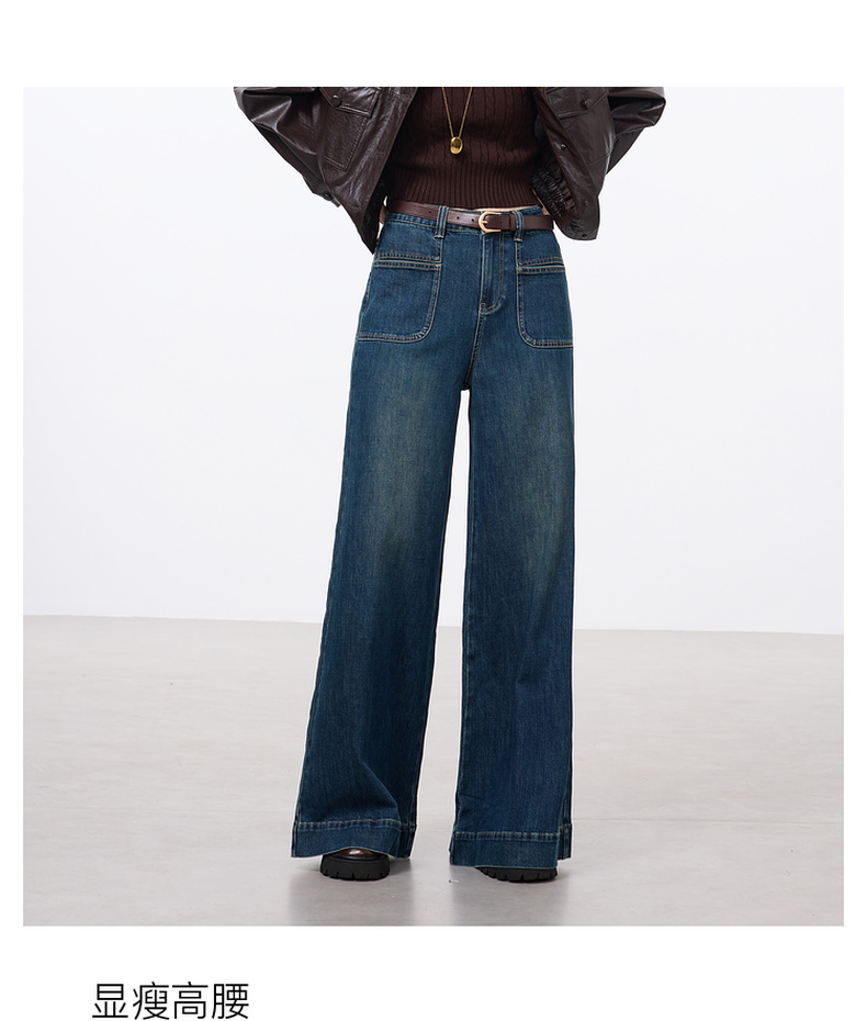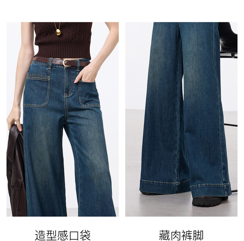 三彩2026春季新款摩登牛仔裤高腰宽松拖地长裤复古显瘦阔腿裤M