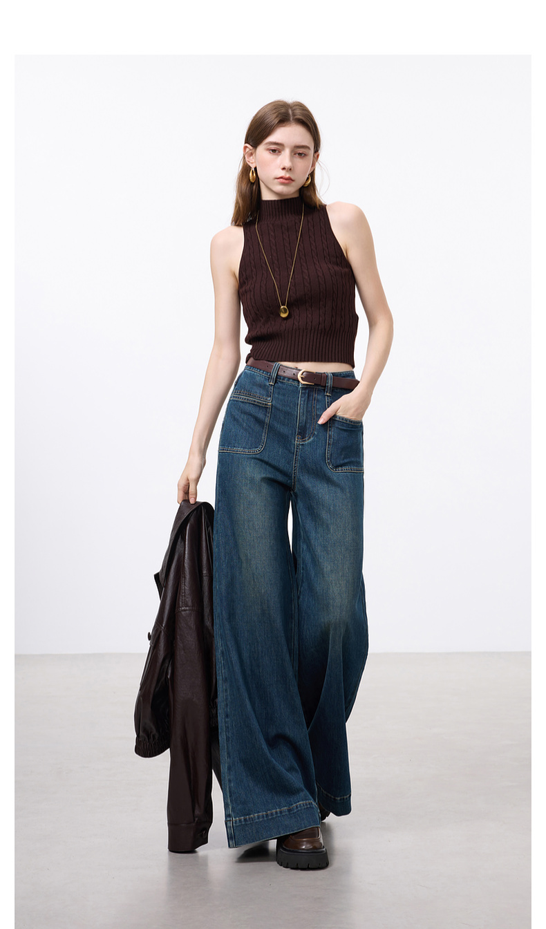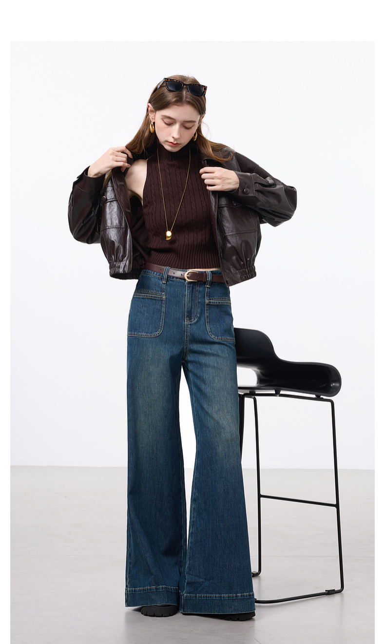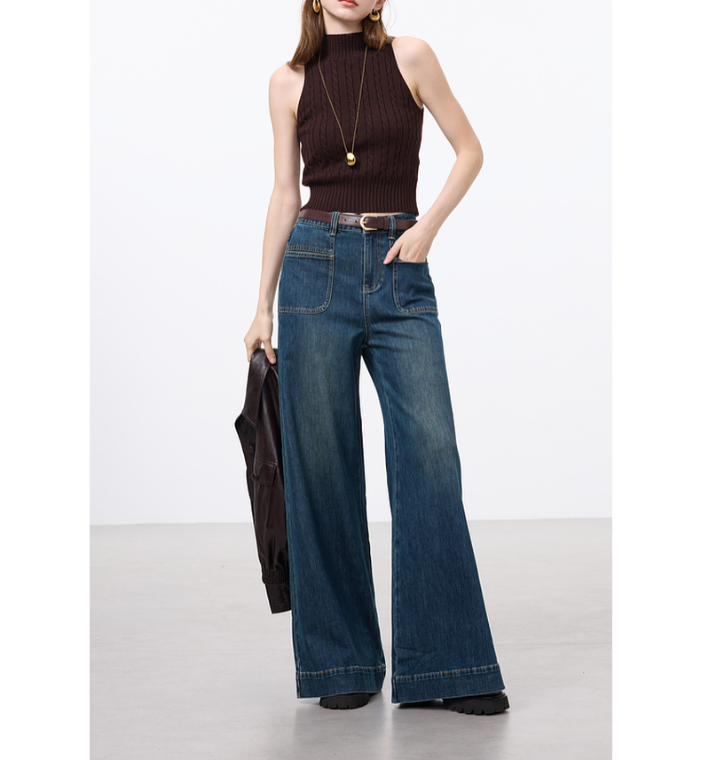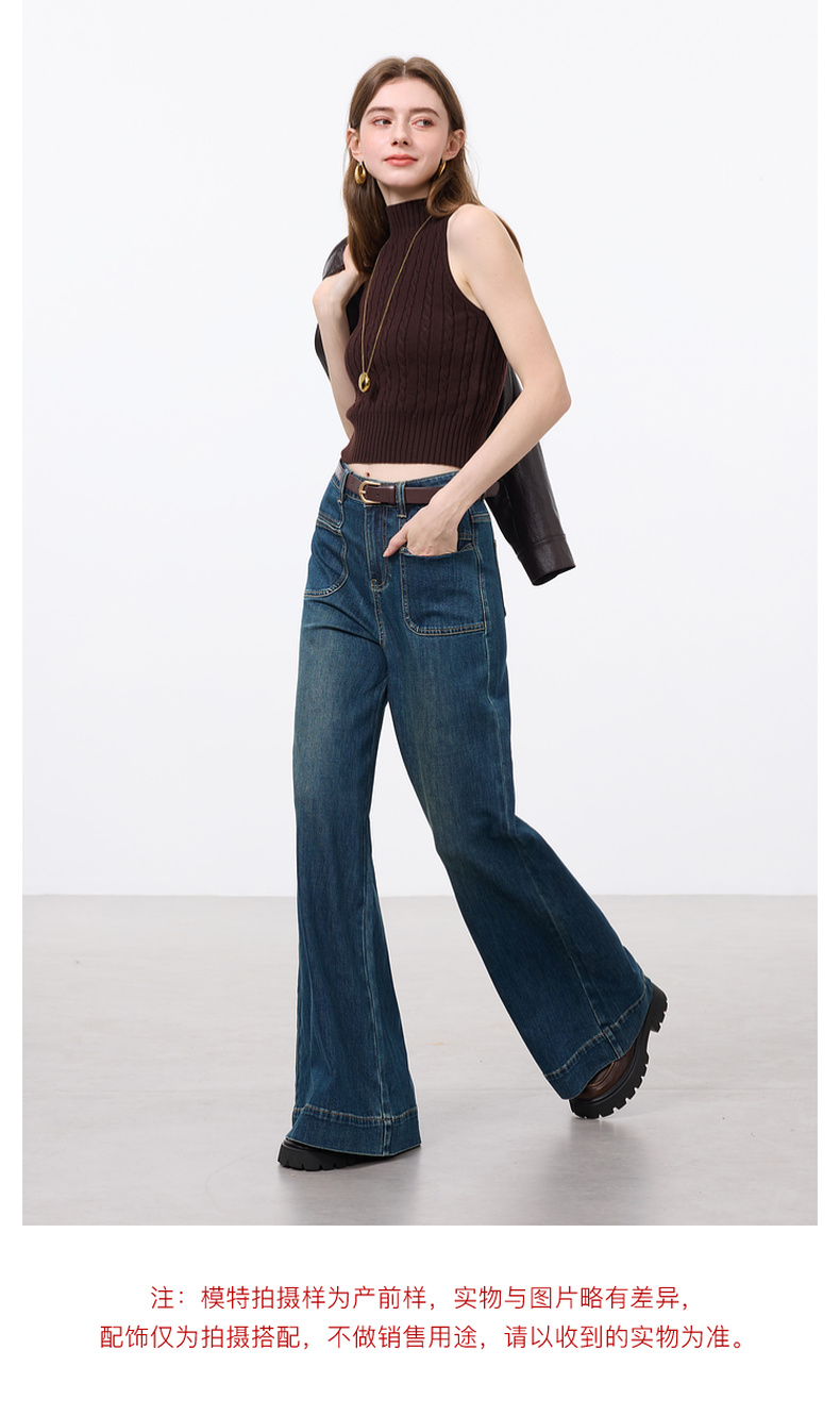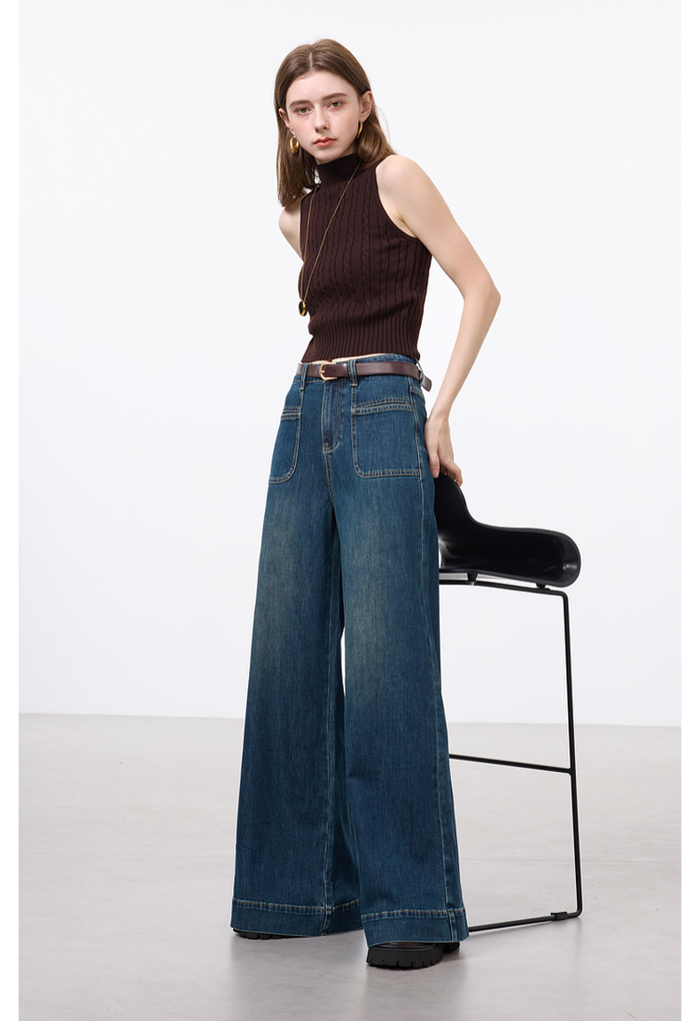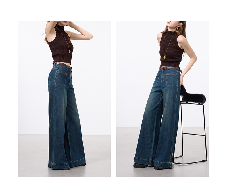三彩2026春季新款摩登牛仔裤高腰宽松拖地长裤复古显瘦阔腿裤M