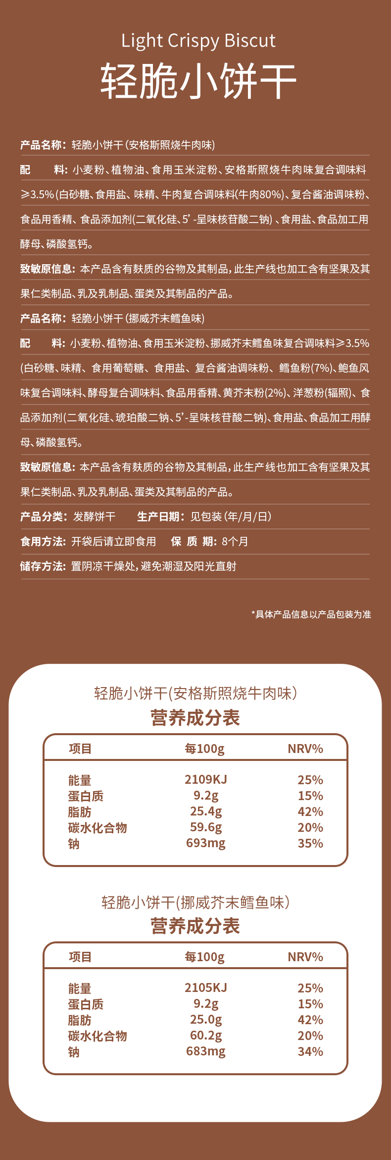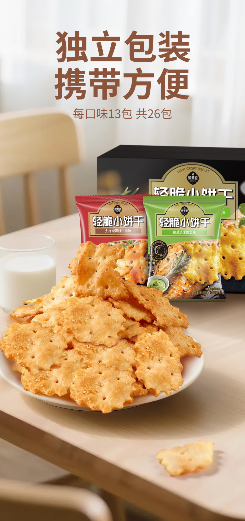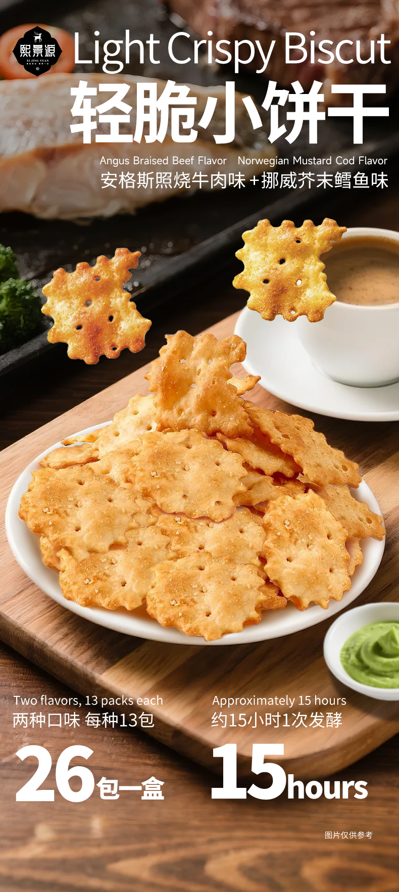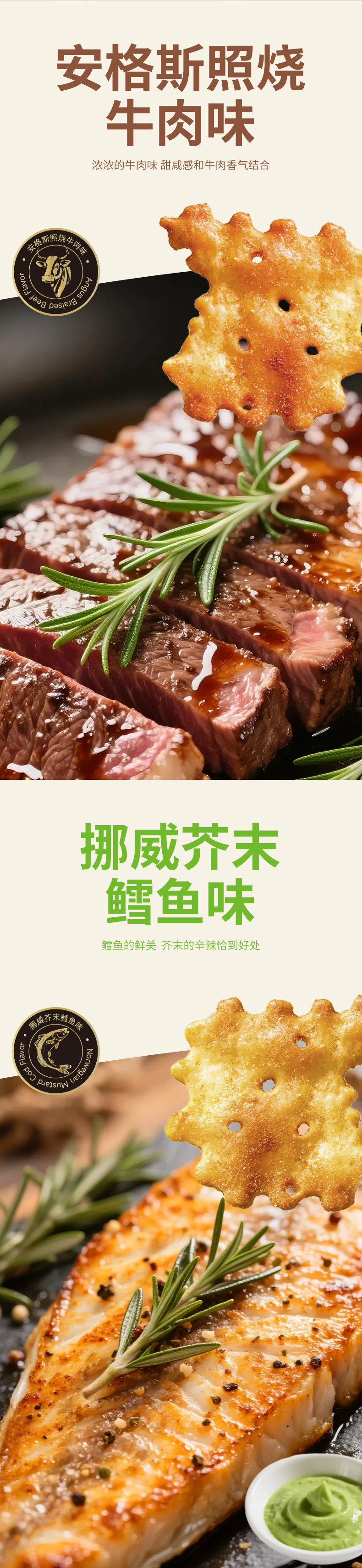 【产品名称】熙景源轻脆小饼干(安格斯照烧牛肉味+芥末鳕鱼味)
