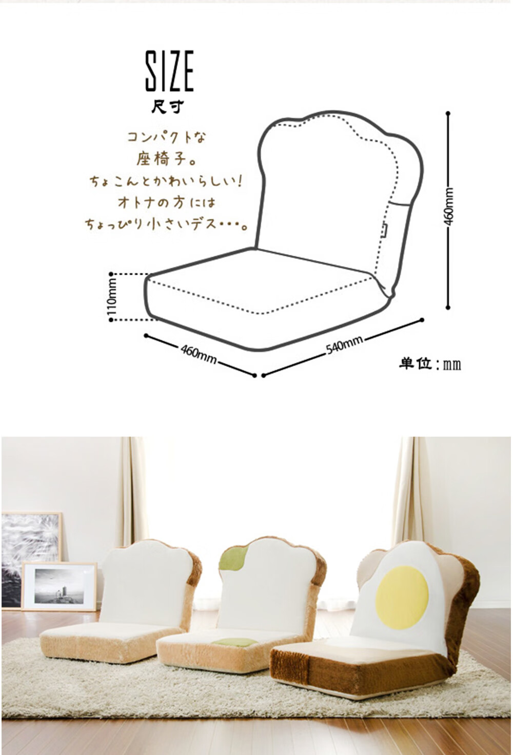 日式创意单人沙发椅可拆洗可调节面包日式座椅