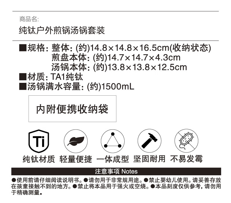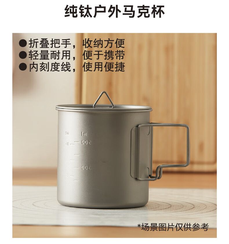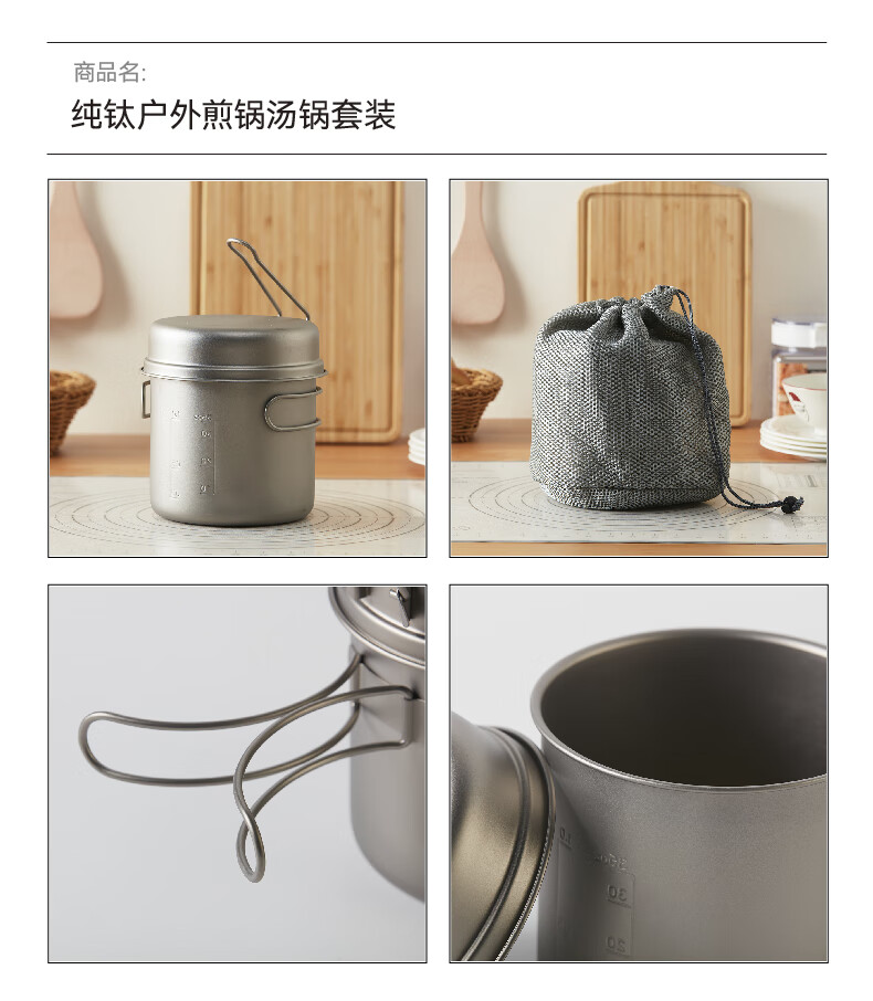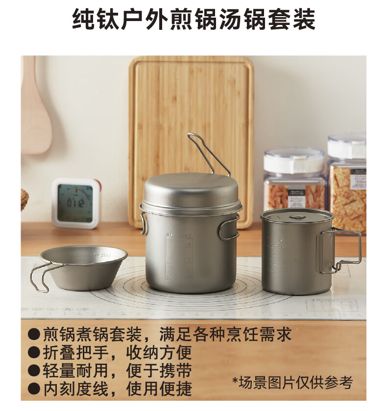 NITORI宜得利家居 野餐便携式纯钛户外煎锅汤锅套装马克杯雪拉碗