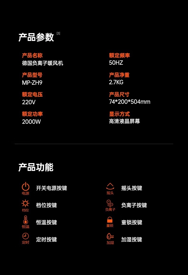 【2025年新款】高品质 德国权尚 全屋升温取暖神器 火凤系列加湿暖风机 MP-ZH9