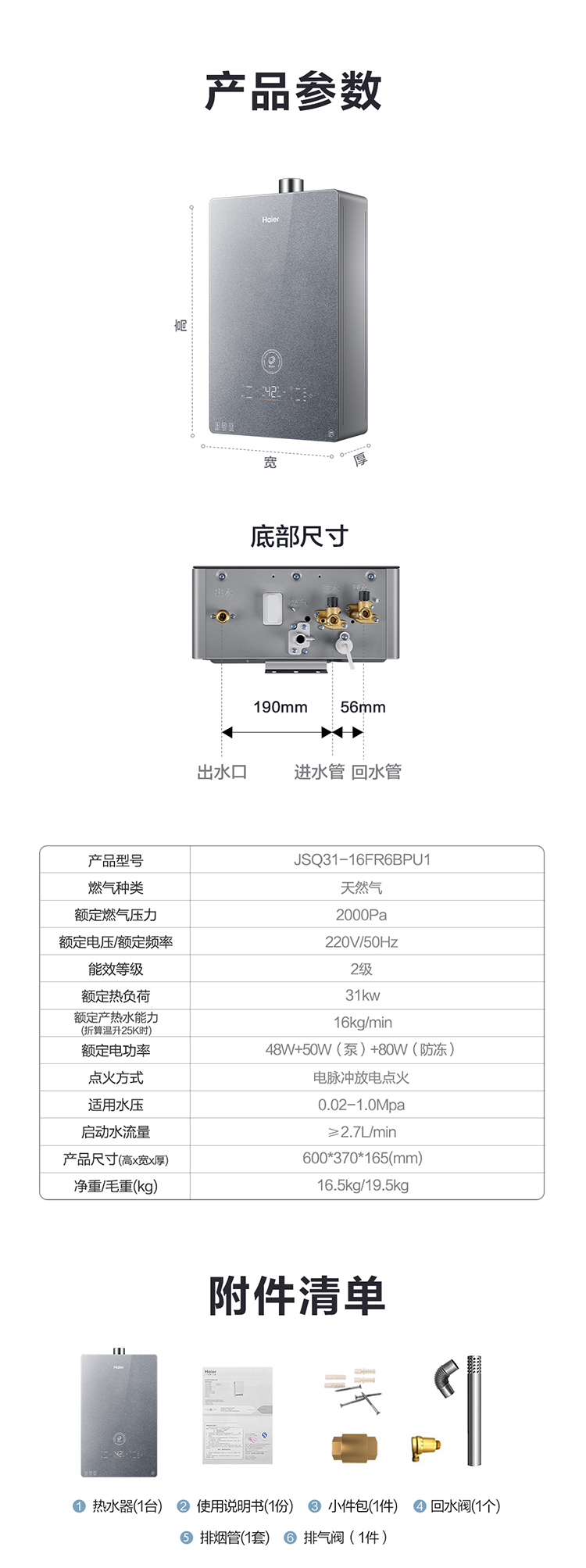 海尔/燃气热水器/JSQ31-16FR6BPU1