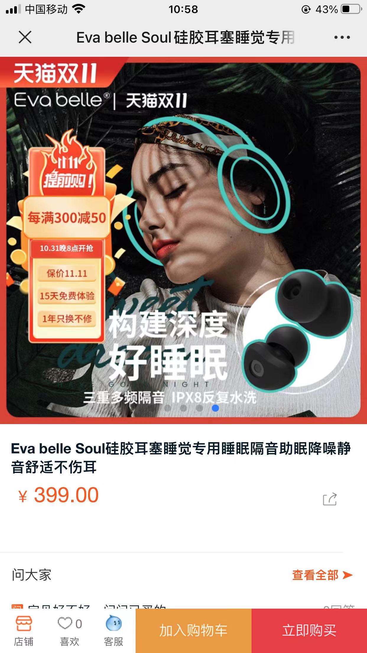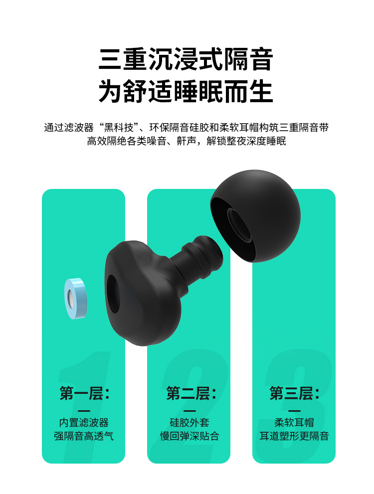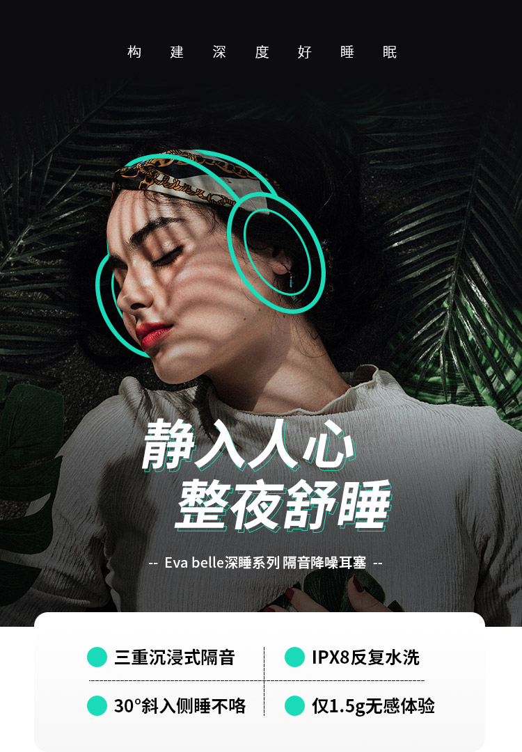 Eva belle Soul 睡觉专用记忆棉耳机 睡眠隔音助眠降噪静音 舒适不伤耳