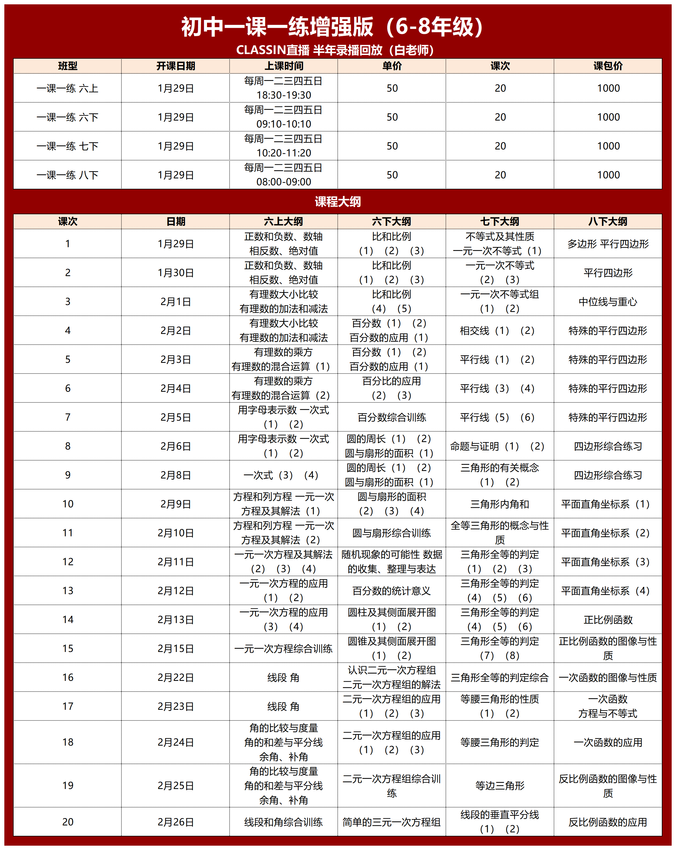 26寒 初中数学一课一练增强版 新授知识点+刷题(6-8年级)课包