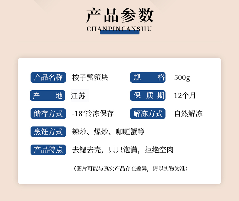 淘鲜拾光 吕四东海冷冻梭子蟹大蟹块 速冻锁鲜免处理500g*2