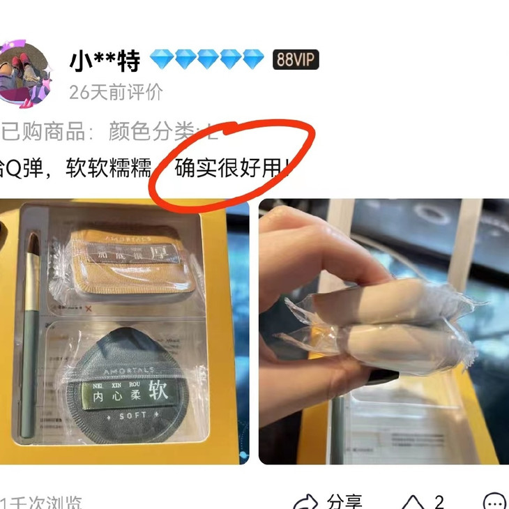 真的是没有对比没有伤害❗❗❗给姐妹们来个对比👉看看尔木萄plus版的100分粉扑有多大💥
