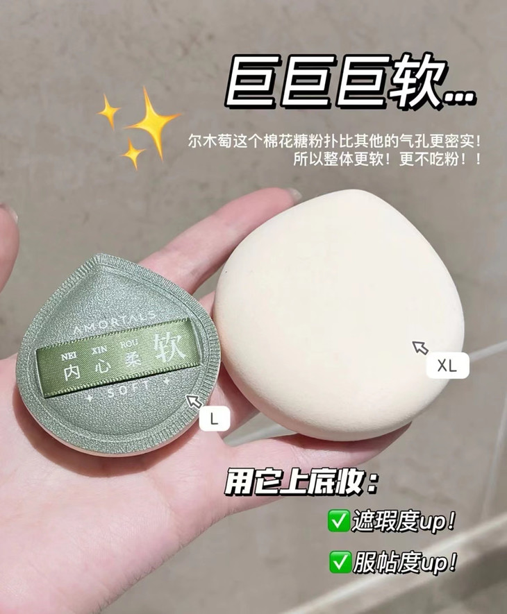 【规格】AMORTALS尔木萄底妆100分粉扑套盒(L),内含舌形遮瑕刷L*1、方形100分粉扑*1、水滴形100分粉扑L*1; AMORTALS尔木萄底妆100分粉扑套盒(XL),内含舌形遮瑕刷XL*1、水滴形100分粉扑L*2