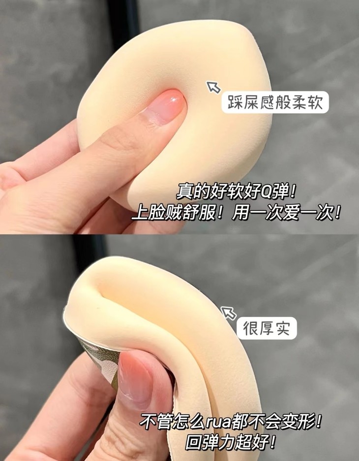 最重要的是❗❗❗❗它拍出来的妆感还超级服帖➕细腻,粉底液仅仅扒牢😍 着重 夸一下它的水滴💧设计,鼻翼👃,嘴角👄、眼角👀等细节位置都能妥妥地照顾好👍 随便拿个粉底液用100💯分粉扑拍拍拍拍🖐泛红、痘印…这些面部小瑕疵它都能遮个七七八八的😍纹路深的地方也不卡,直接把粉底液拍进去👏 姐妹👭咱就说👉上底妆,谁敢说不需要它❓