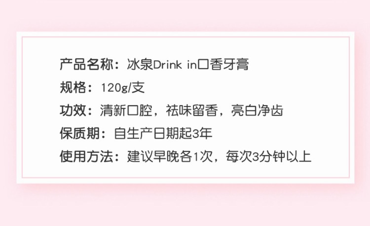 冰泉-Drink In 120g口香牙膏 120g/支*1