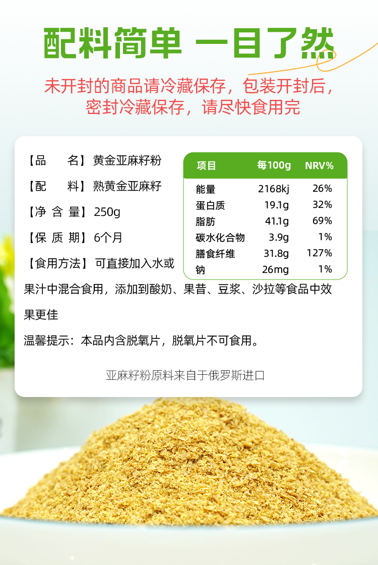【营养又百搭】草牧里 黄金亚麻籽粉试吃装 10g*5小袋 低碳水高膳食纤维