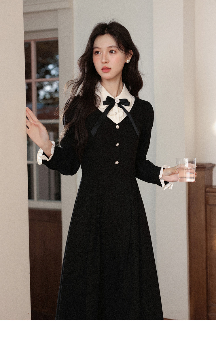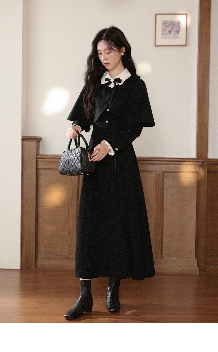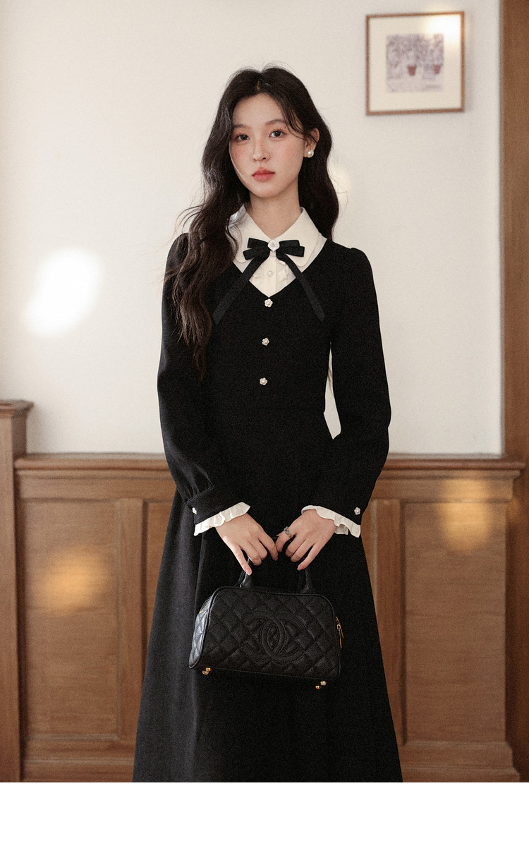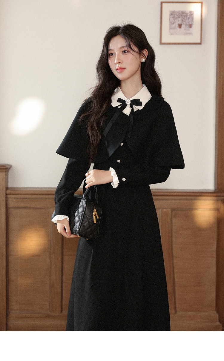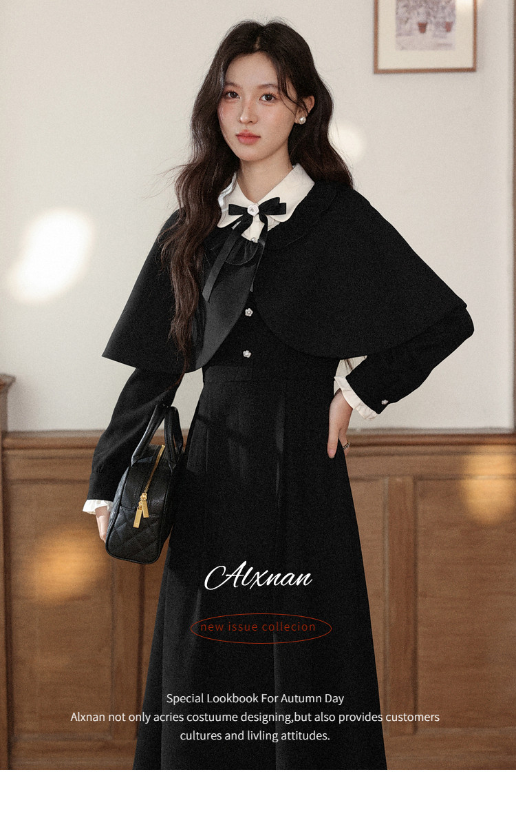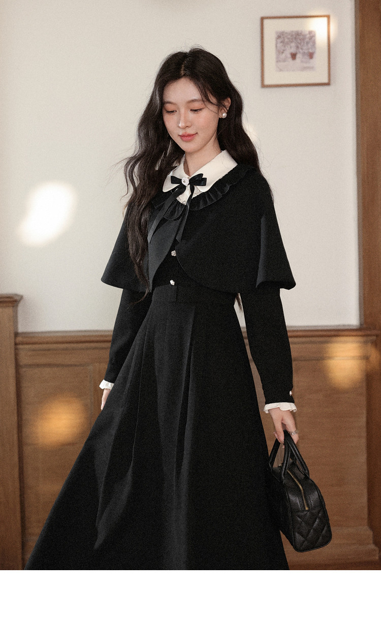 鹿向南「千金可露丽」黑色假两件连衣裙时尚套装秋季新款两件套女